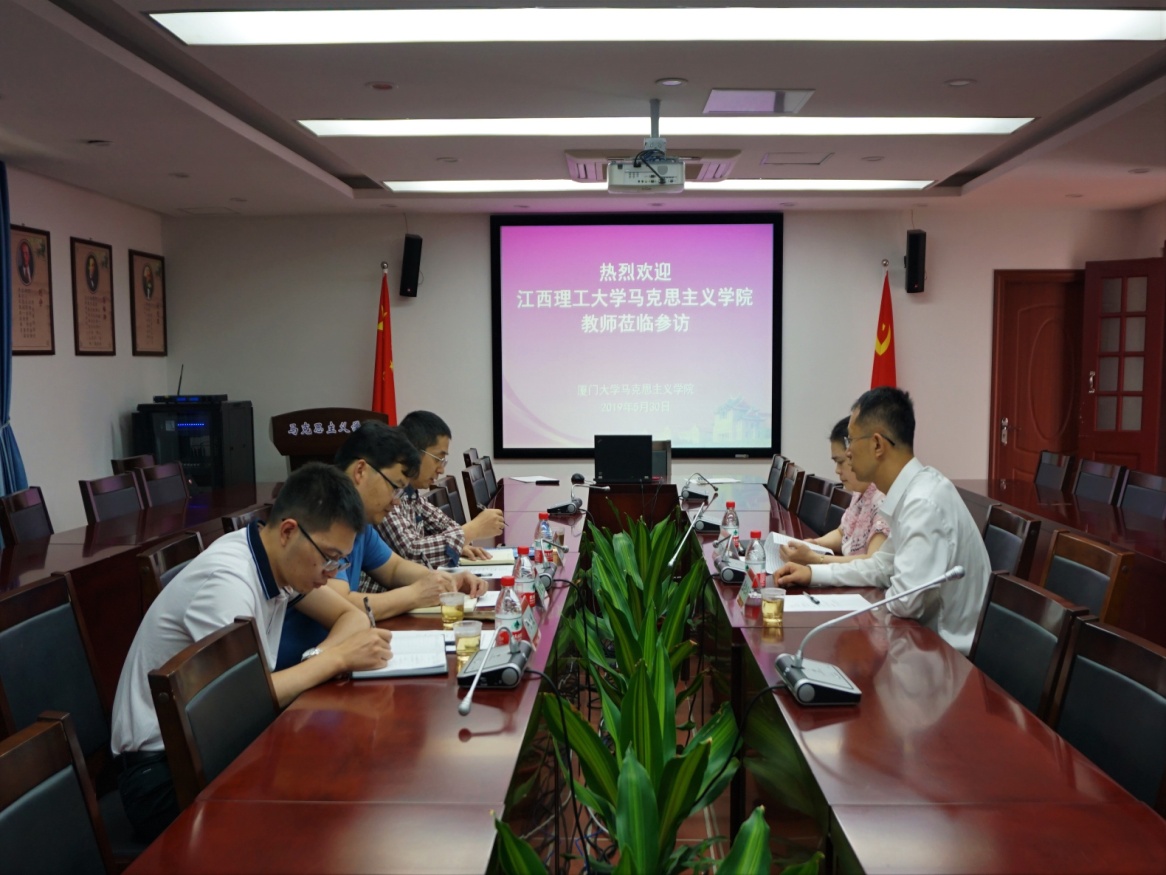 2019年5月30日上午,江西理工大学党委宣传部副部长、马克思主义学院副院长兼党委副书记魏建克、马克思主义学院平台负责人邓显超、概论教研部主任严九发来学院进行座谈交流。我院副院长张艳涛、马克思主义基本原理教研部副主任傅丽芬参加座谈会。