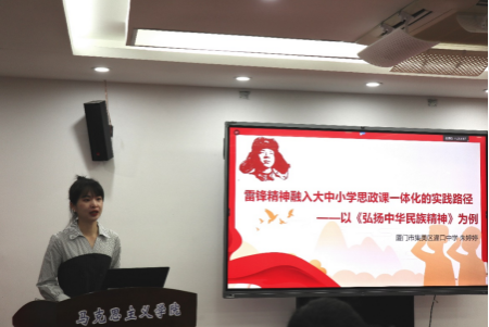 灌口中学高一备课组长朱婷婷老师以《弘扬民族精神》这一课的具体教学设计为例,从教学目标的定位,教学环节的承接、递进、深化,教学评价的综合多元多样,生动呈现了将雷锋精神融入大中小学思政课一体化的实践路径。
