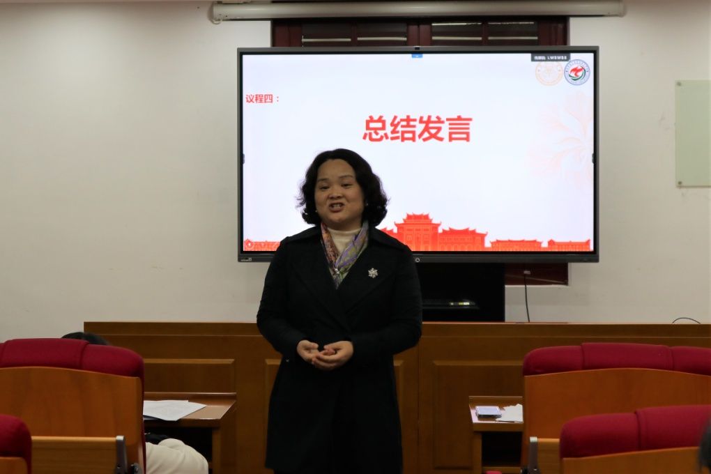 学院党委书记石红梅作大会总结发言。她表示,学院已进入高质量内涵式发展阶段,三个方案的内容彰显了学院未来的发展方向与工作重点。她对方案的落实提出了要求,希望“习近平新时代中国特色社会主义思想概论”课程能够积极承担起思政课的使命,落实各项任务举措,打造“金课”品牌;“南强青马”青年教师能力提升计划和优秀研究生培养计划,能够在提升青年教师整体水平、培养高质量的后备人才方面发挥实际功效。石红梅指出,学院发展与每一位教师息息相关,所有教职工都是学院发展的建设者、建言者,期待大家共同协作,在未来十年发展的黄金期能够乘势而上,共同推进学院事业大发展。