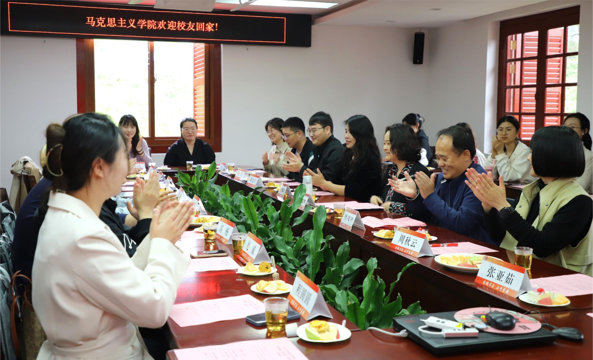在热烈的掌声中,马克思主义学院“情系囊萤,薪火相传”院友座谈会圆满落幕。院友们与参会师生在囊萤楼合影留念。会后,部分师生与院友们进行了亲切、细致的交谈。院友们结合自身经历,向学弟学妹们进一步分享了宝贵的求职经验,鼓励学弟学妹们要及时做好人生规划,脚踏实地、努力进取,不断提升自身的综合能力。