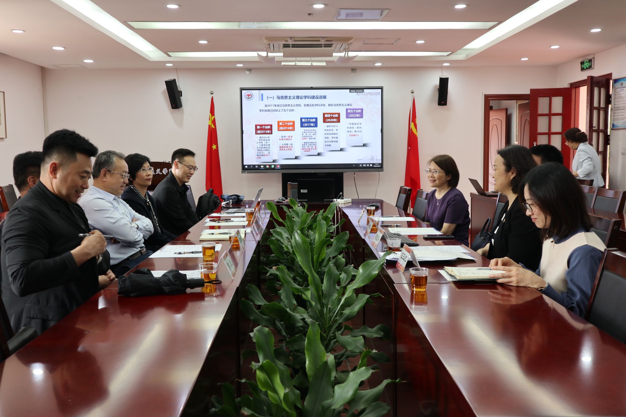 与会人员围绕学科建设、思政课教学、人才培养、科学研究等工作进行深入交流研讨,并合影留念。参会人员表示,要加强合作交流,共同推进马克思主义学院、马克思主义理论学科高质量内涵式发展。
