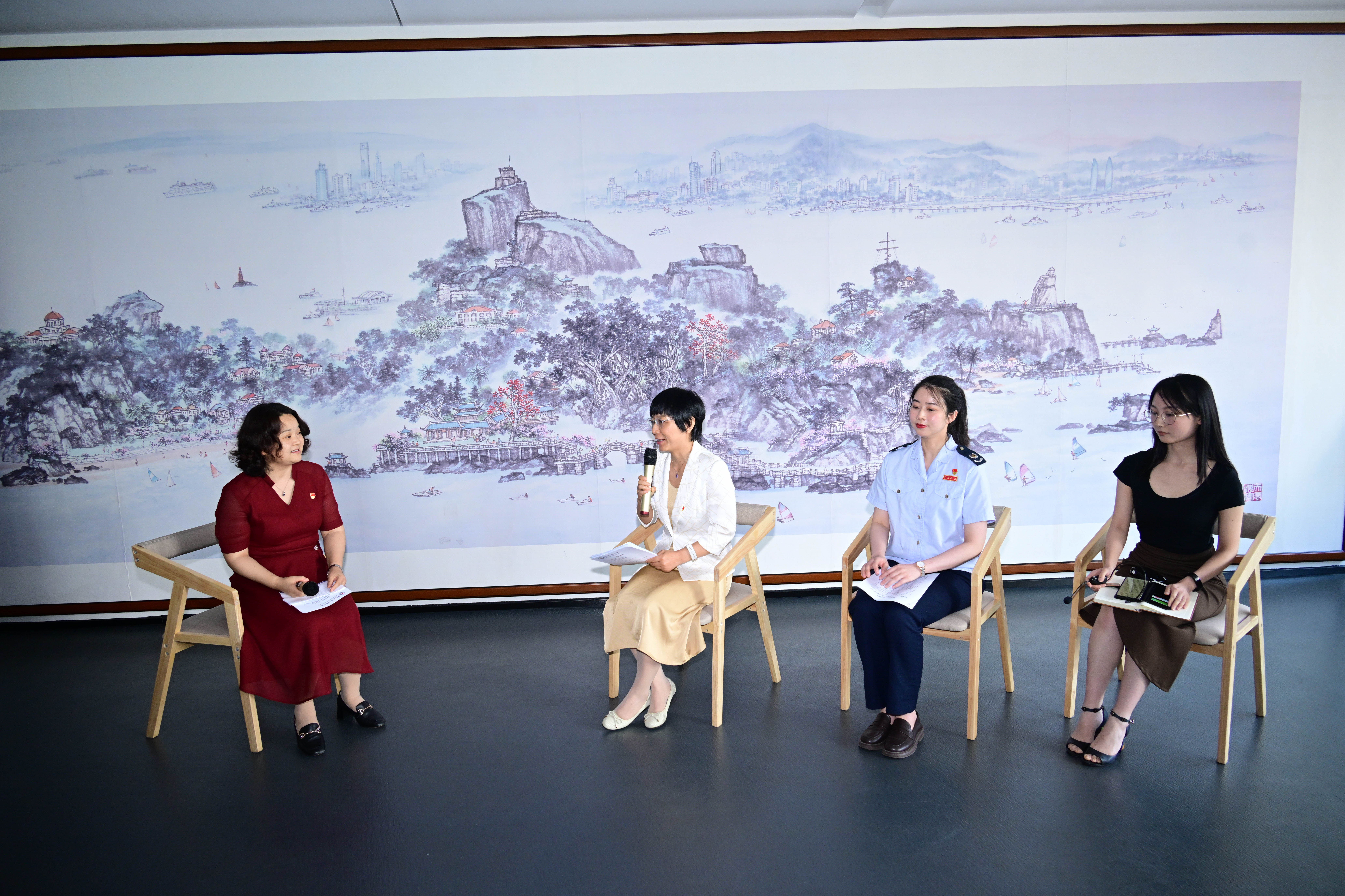 在“思想探源之路上的福建担当”研学环节中,厦门大学马克思主义学院党委书记石红梅教授担任主持人,和三位与谈人从不同的视角进行思想探源。厦门经济特区纪念馆副馆长徐翠红为大家讲述纪念馆建成的故事。厦门自贸片区税务局团总支书记林典莉动情讲述了厦门税务人以习近平新时代中国特色社会主义思想为指引,勇立潮头、守正创新,在高质量提升发展进程中争当税收排头兵的生动实践。厦门大学马克思主义学院博士生王仪谈到,厦门经济特区敢想敢试的精神给予一代代青年源源不竭的力量。“历史选择了厦门。”在互动交流环节,徐翠红馆长对于在场学生关于“厦门何以能够成为中国最早实行对外开放政策的经济特区之一?”问题给予了明确的回答。