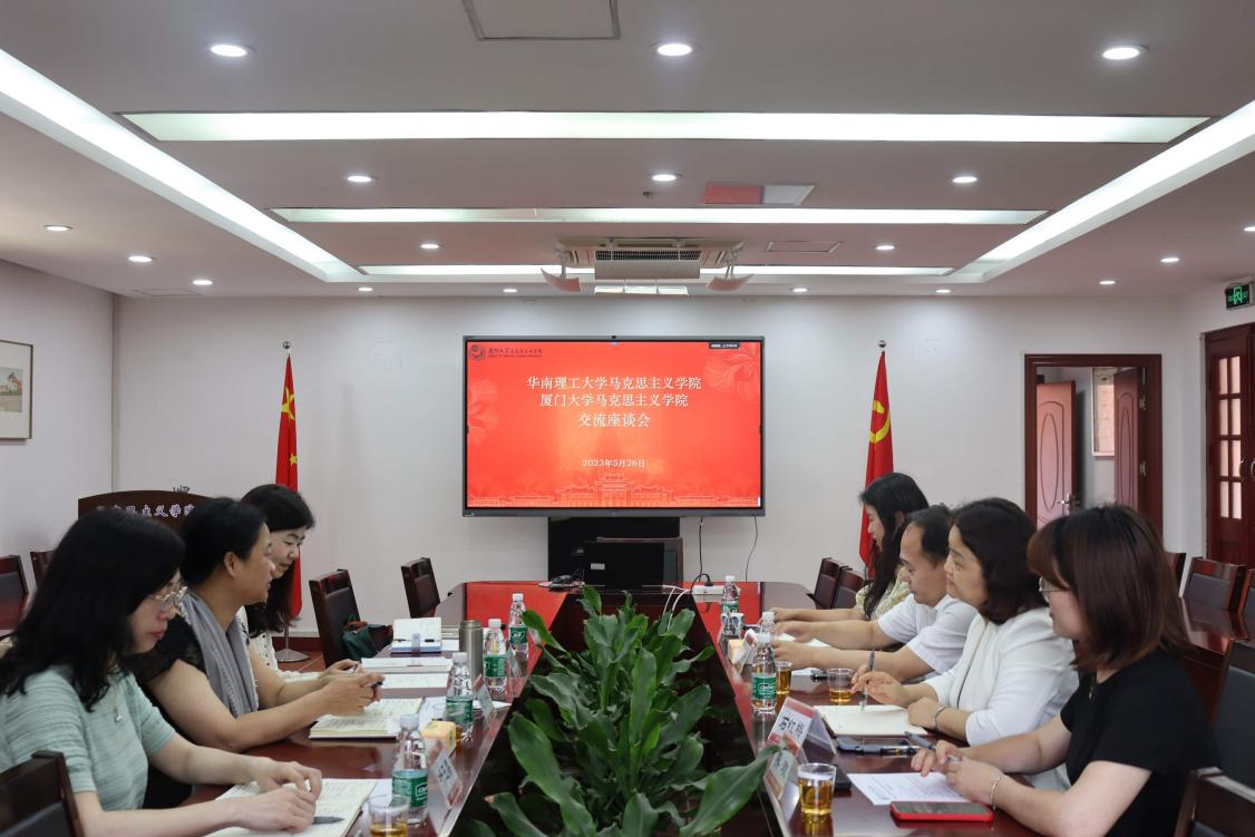 5月26日上午,华南理工大学马克思主义学院党委副书记刘少萍、叶玉嘉,副院长王晓丽一行到我院交流调研。交流座谈会在囊萤楼302会议室举行。学院党委书记石红梅、副书记杨建中、办公室副主任熊欢和团委书记郭晓玲参加座谈。