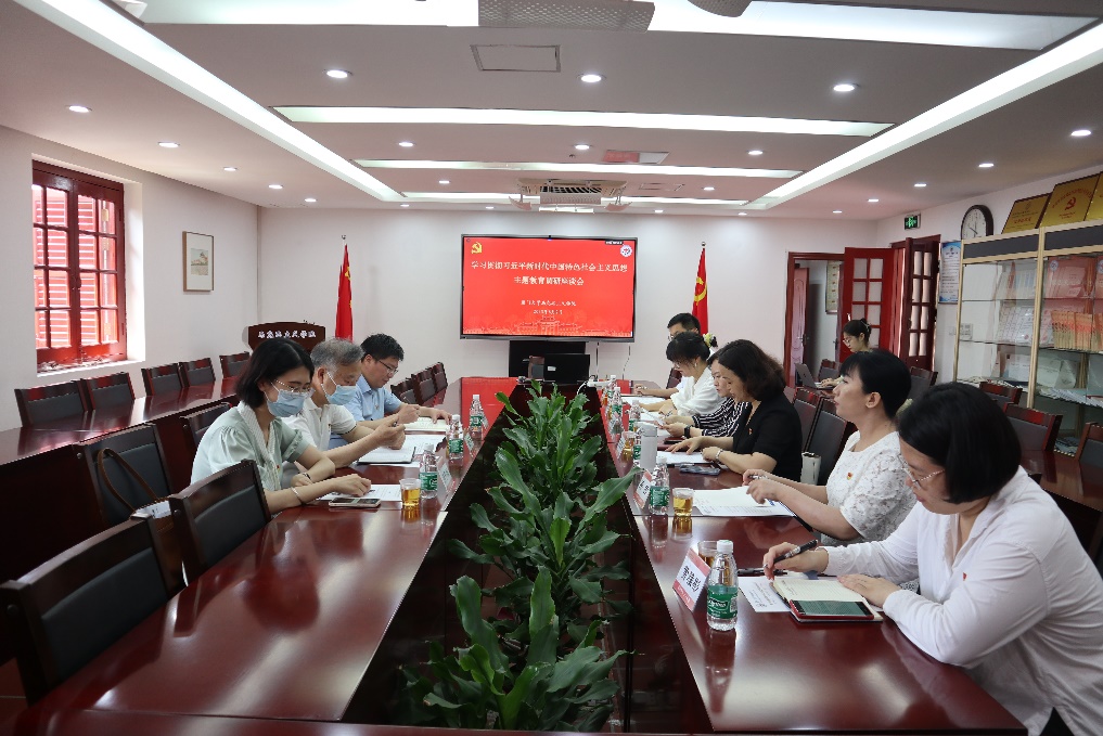 马克思主义中国化教工党支部书记吴茜、思想政治教育教工党支部书记苗瑞丹、2020级博士研究生党支部书记杜辉、马列经典读书社党支部书记黄雅彬依次就支部开展学习贯彻习近平新时代中国特色社会主义思想主题教育各项工作的情况进行简要汇报。