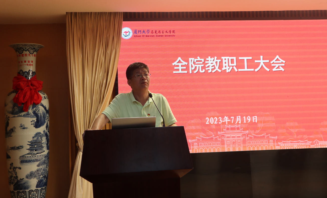 徐进功院长做总结发言。他充分肯定了全院教职工在本学期工作中所取得的突出成绩,并对党建工作、学科建设、思政课教学、人才培养、科学研究、学生工作等方面提出进一步要求。他强调,全体教职员工要以立德树人为根本任务,以队伍建设为核心,以办好思政课为关键,以强化科研为支撑,以社会服务为载体,以党建和思想政治工作为保证,着力推进学院和学科建设高质量内涵式发展。