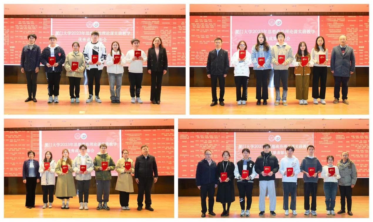 方颖宣读《关于表彰2023年厦门大学思想政治理论课实践教学优秀成果、优秀指导教师的决定》。本次共有230组实践成果报告获奖,其中一等奖22组、二等奖47组、三等奖75组、优秀奖86组,池骋等23位老师获得“优秀指导教师”荣誉称号。