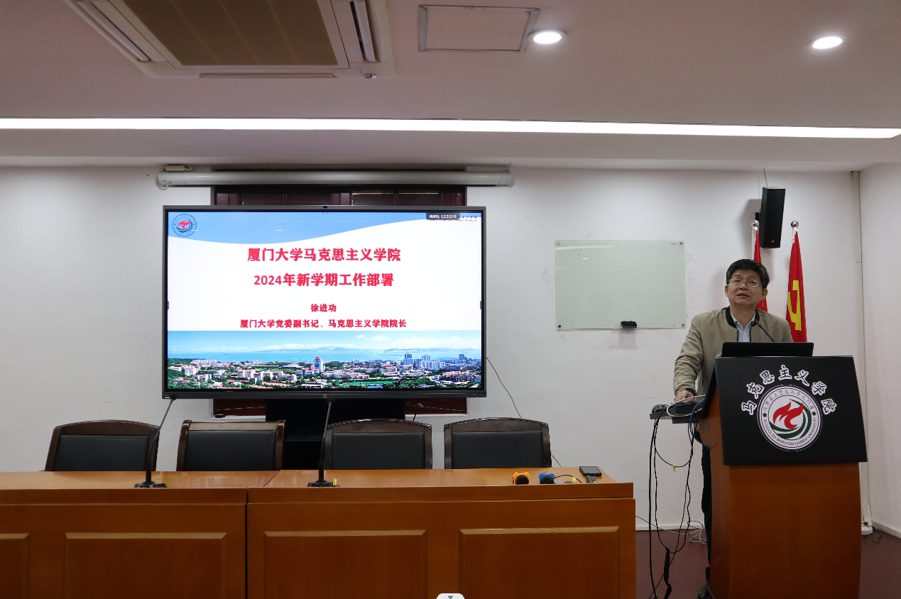 徐进功院长围绕学科建设、思政课教学、人才培养、队伍建设、科学研究与合作交流等方面进行了新学期工作部署。他提出“六个要”的要求:一要落实学科建设思路,推动学科建设的高质量内涵式发展,推进落实本科专业招生工作;二要有序推进常态化教学,健全完善相关教学制度,深化思政课教学改革,持续提升思政课教学质量;三要落实立德树人根本任务,提升人才培养质量,精准落实研究生、博士生人才培养重点工作计划;四要落实国家政策,配齐思政教师队伍,注重高层次人才的外引与内培,长期性、制度性地强化对中青年教师的培养;五要推进科研申报高质量发展,谋求对外交流新篇章;六要贯彻落实学校“过紧苦日子”的要求,优化财务收支结构。