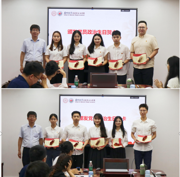 初心如磐,奋楫笃行。作为党员,肩负着更大的责任和使命。“政治生日”是对党员身份的再次庄严确认和提醒,更是对每一位党员党性的鞭策和期许。它时刻提醒着党员们要不忘初心、牢记使命。伴着亲切的关怀与祝福,徐进功院长为毕业生党员颁发“政治生日”贺卡。在刚刚转为正式党员的10名毕业生党员代表,从徐院长手中接过贺卡,庄严表示——个人会以更加严格的标准要求自己,忠于祖国,忠于人民,心怀大我,不懈奋斗!