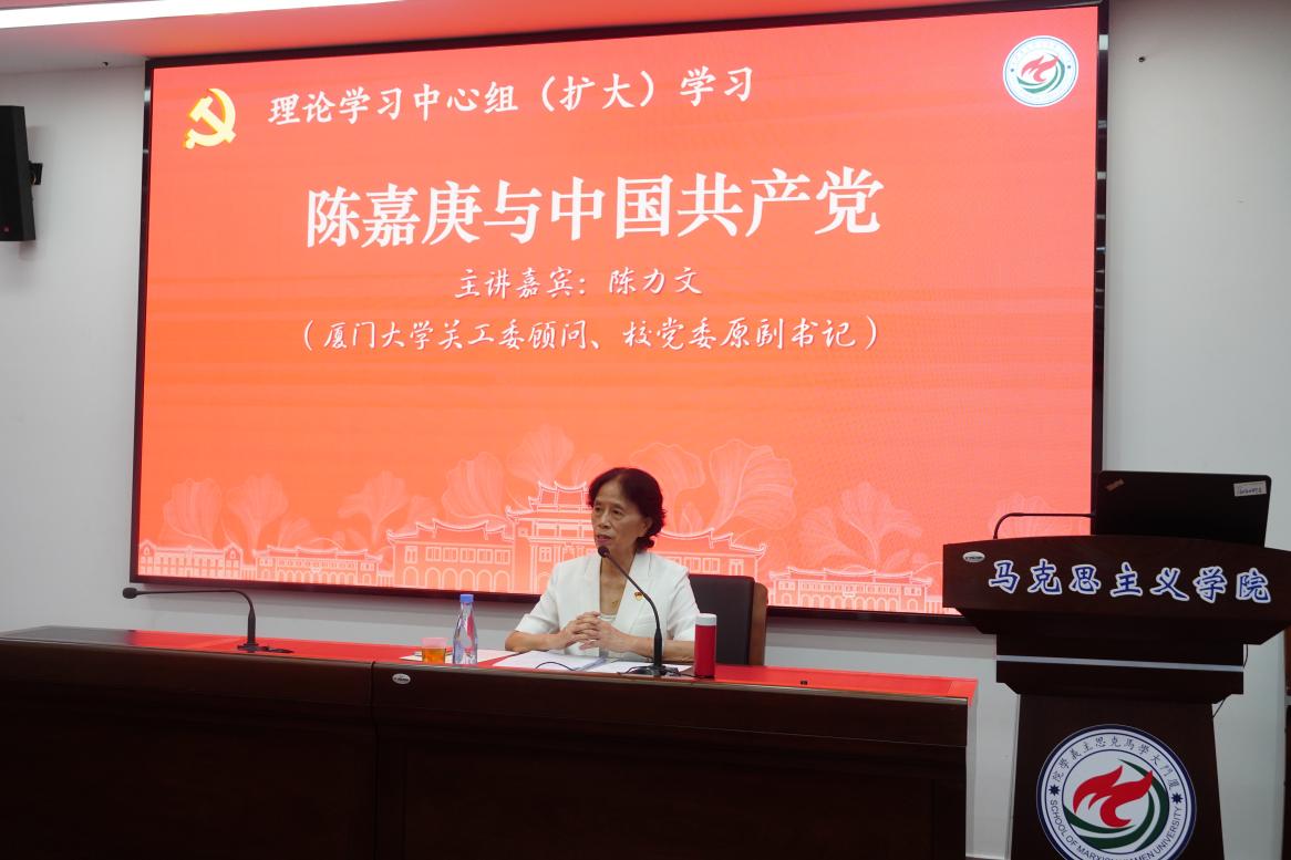 时值陈嘉庚先生诞辰150周年,会议特邀现任厦门大学关工委顾问、校党委原副书记陈力文以“陈嘉庚与中国共产党”为主题为师生党员讲授党课。本次党课也作为学院党委理论学习中心组的一次扩大集中学习。