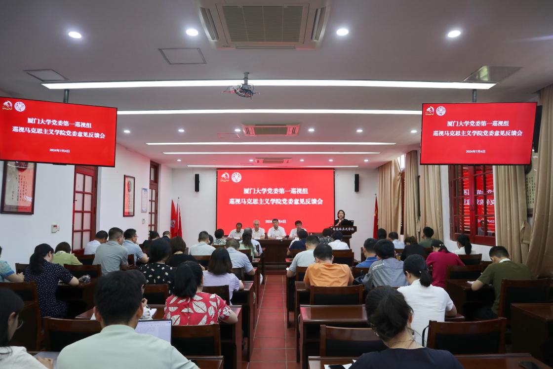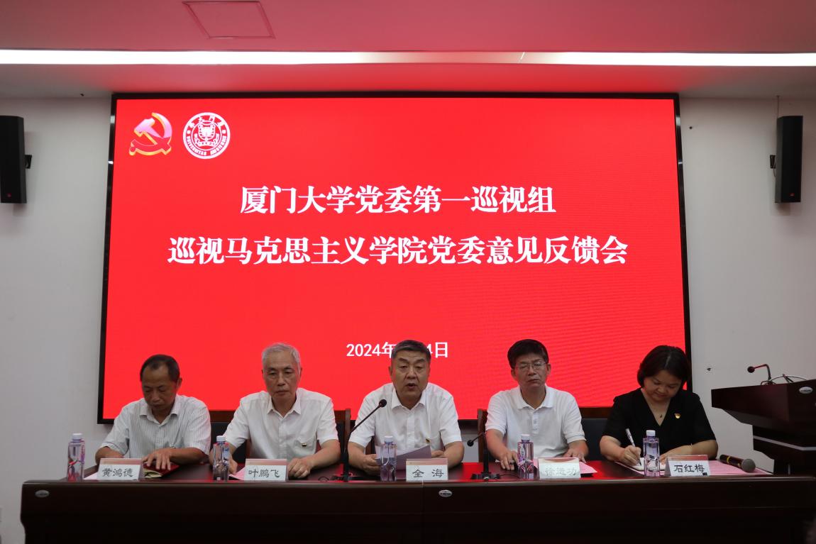 按照校党委巡视工作统一部署,2024年7月4日下午,校党委第一巡视组在囊萤楼216会议室召开巡视马克思主义学院意见反馈会。校党委副书记、纪委书记、国家监委驻厦门大学监察专员全海,校党委第一巡视组组长叶鹏飞、副组长黄鸿德,校党委巡视办主任洪真裁,校纪检监察机构第二纪检监察室主任曾惠容,校党委组织员兼党的建设工作办公室副主任陈秋虹及第一巡视组成员出席会议。