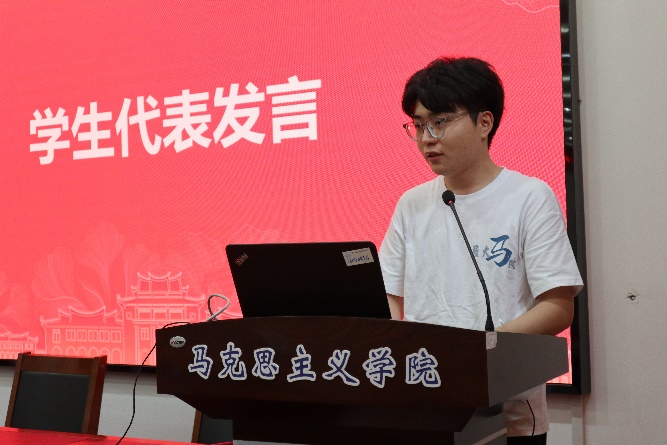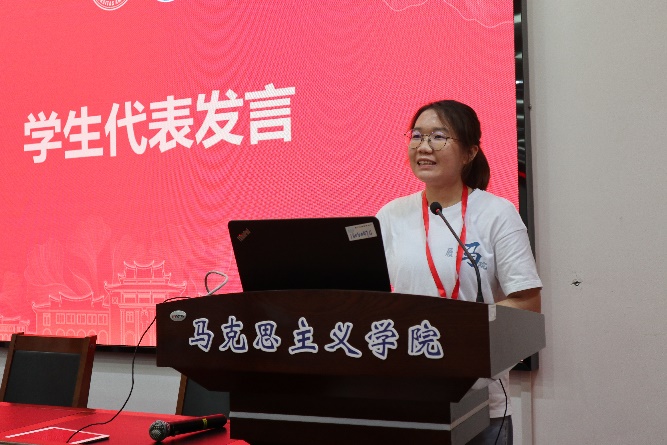 李璐灵、陈兆伊、毛诗予、范彦邦四位营员代表进行发言。他们一致认为,三天的夏令营生活不仅使他们开阔了视野、增进了学识、收获了友谊,更是在心中种下了一颗理想与奋斗的种子,为将来在马克思主义理论领域的深入研究打下了基础,并表达了来年与同行人再度相逢于厦大马院的热切期待。