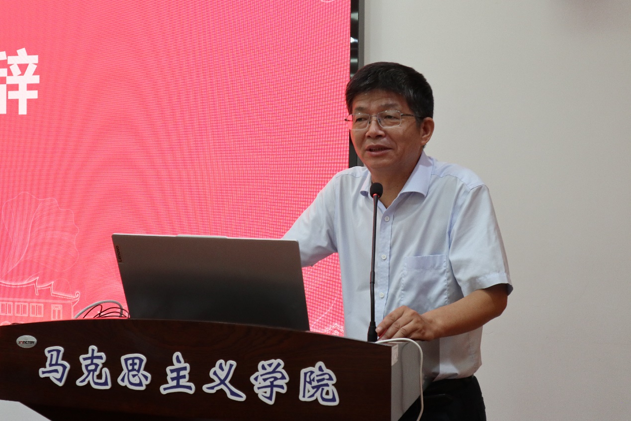厦门大学原党委副书记、马克思主义学院院长徐进功教授致辞。他首先祝贺夏令营的成功举办,充分肯定了全体营员的精彩和优秀表现;他重点就厦门大学马克思主义学院深厚的科研实力、卓越的师资力量、突出的发展成就等方面进行阐述。他指出,学院有着优秀辉煌的马克思主义理论研究传统,涌现出一大批优秀的马克思主义理论大家,特别是郭大力、王亚楠翻译的《资本论》,是当时国内首部全译本,填补了国内《资本论》翻译领域的空白;他呼吁来自全国各地的优秀营员,用心感受厦门大学的优美环境好、深厚的人文底蕴、独特的“四种”精神,这些都是成才、成长的丰厚土壤,期待各位营员来厦门大学马克思主义学院学习深造;徐进功院长还表达了对营员们的期待与祝福,他希望各位营员能够继续保持对知识的渴望和对理想的追求,不断提升自己的学术素养和实践能力,以马克思主义为指引,为实现中华民族伟大复兴贡献自己的力量,共同书写属于青年的时代华章。徐进功院长幽默风趣、深入浅出的讲话,赢得现场同学的阵阵热烈掌声。