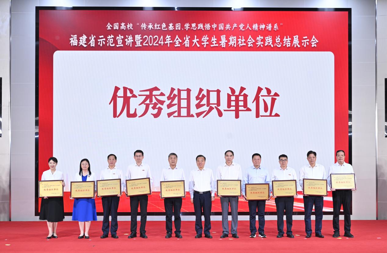 由厦门大学、闽南师范大学、厦门理工学院、福建中医药大学师生组成的2024年福建省大学生暑期社会实践“文化传承”专题示范队获“追寻领袖足迹 体悟伟大变革”2024年全省大学生暑期社会实践活动“优秀实践团队”荣誉称号。