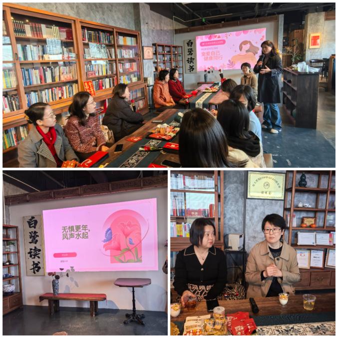 厦门市弘爱妇产医院副主任医师侯进琳博士以《无惧更年,风生水起》为题开启专题讲座,通过图文并茂的讲解,系统阐释更年期生理变化、营养管理及心理调节知识,现场演示的“一分钟自测表”引发热烈讨论。在互动环节,女教职工们与侯进琳博士进行了深度交流。
