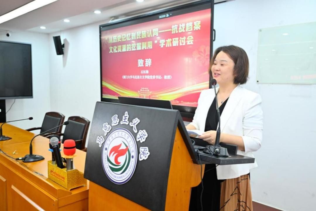 厦门大学马克思主义学院党委书记石红梅教授作开幕式致辞,提出挖掘厦门大学抗战历史资源,传承学校先辈的爱国精神,以此为基础,通过院馆协作,针对性解决抗战档案整理中的问题。同时积极倡导抗战档案“活态传承”,推动史料与教育体系、文创开发结合,实现理论与实践双重创新。