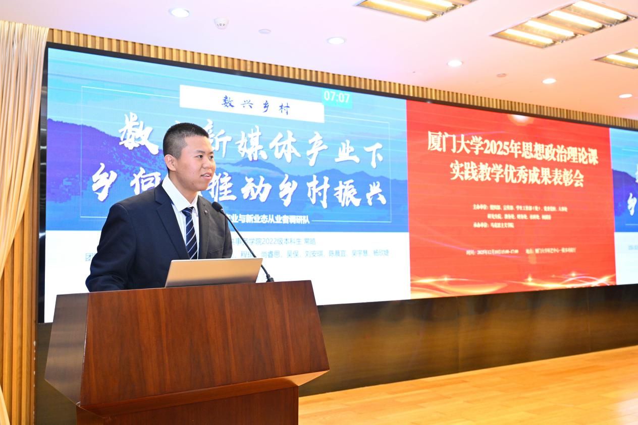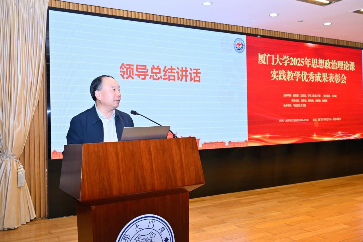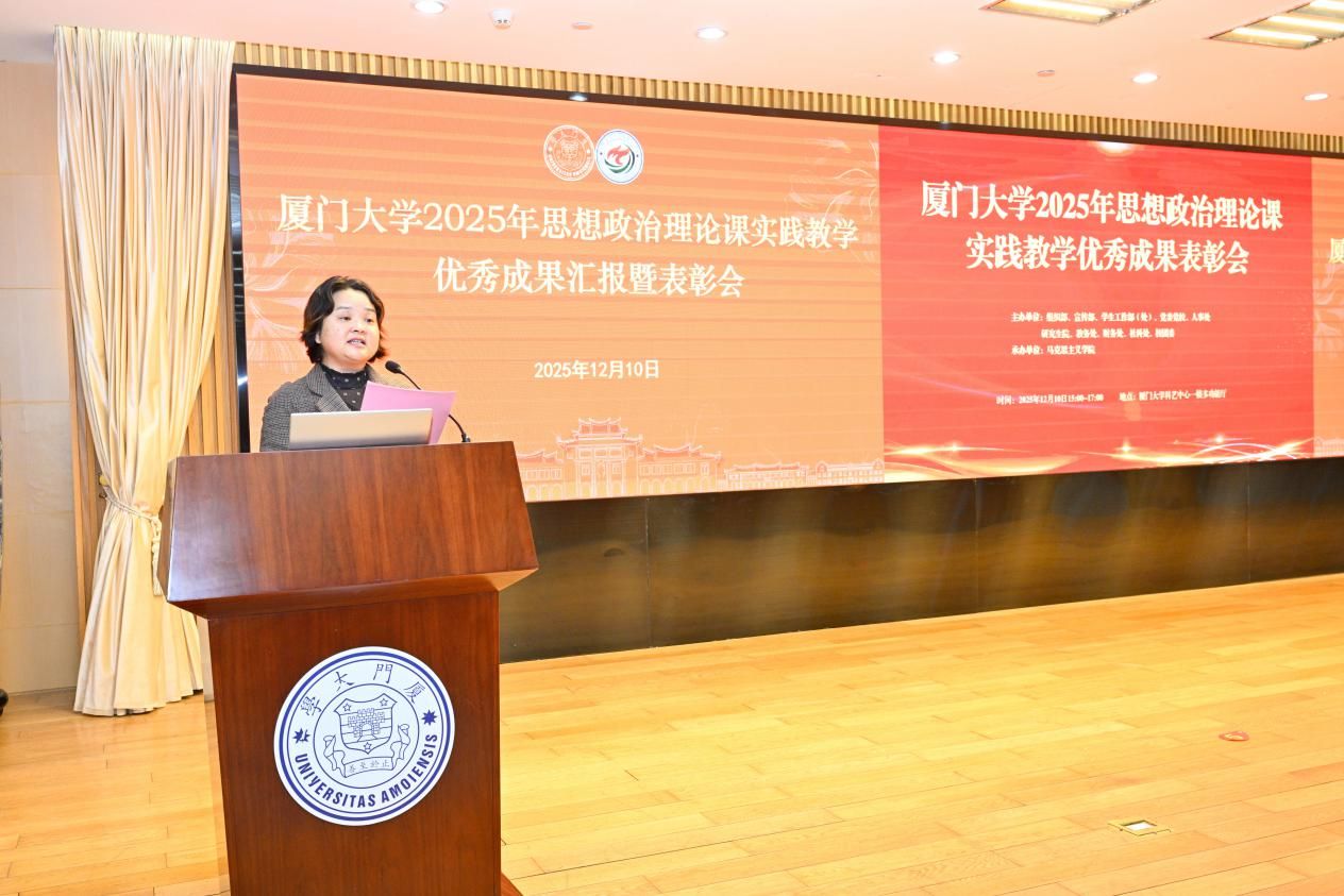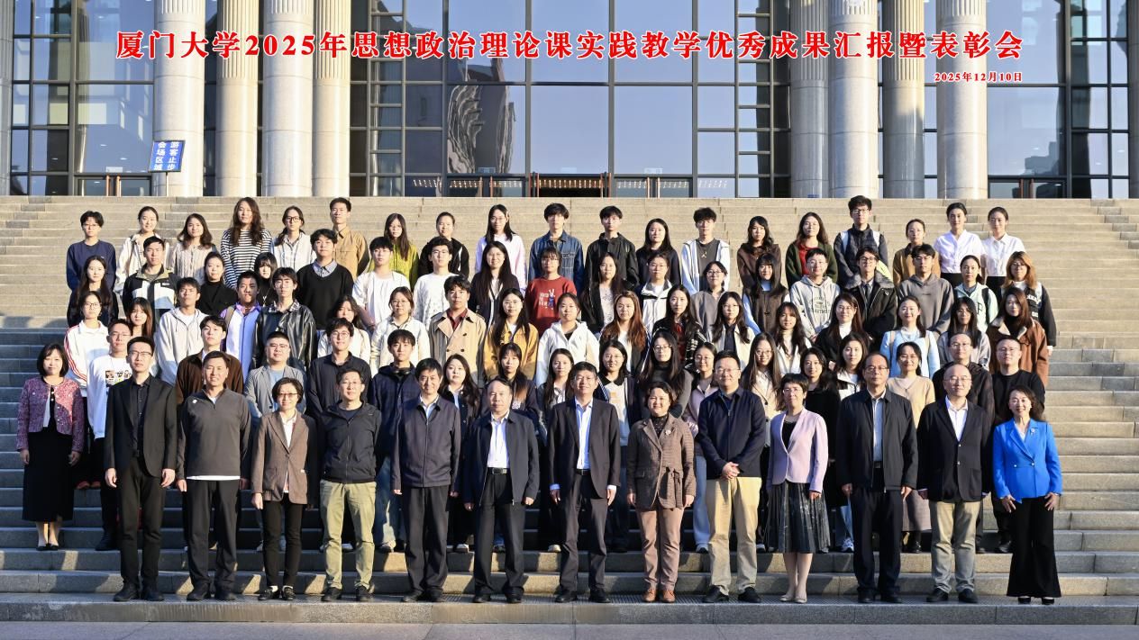 为深入贯彻党的二十大及历次全会精神,落实习近平总书记关于“把思政教育‘小课堂’和社会‘大课堂’有效融合起来”的重要指示,进一步提升我校思政课实践教学育人成效,2025年12月10日下午,厦门大学2025年度思想政治理论课实践教学优秀成果汇报暨表彰会在科学艺术中心一楼多功能厅召开。厦门大学原党委副书记、马克思主义学院院长徐进功,校党委常委、宣传部部长、教师工作部部长高和荣,美育与通识教育中心副主任、教务处副处长黄艳萍,校团委书记张晴,学校各部门负责人、各学院分管学生工作的院党委副书记、学校思政课实践教学中心负责人、思想政治理论课教师、辅导员及学生代表等出席本次会议。会议由厦门大学马克思主义学院党委书记石红梅老师主持。