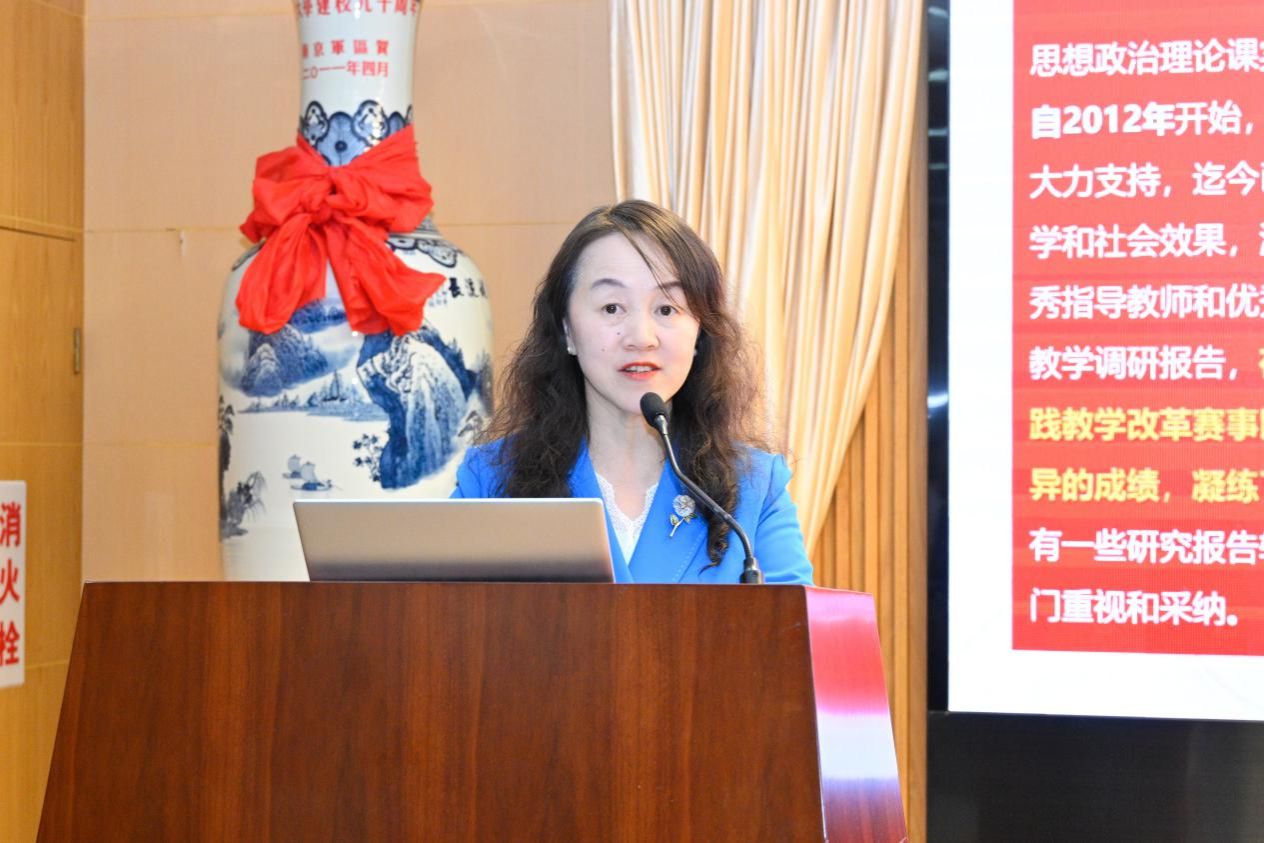 马克思主义学院副院长原宗丽对2024-2025学年思想政治理论课实践教学工作做总结汇报。她总结了本年度思想政治理论课实践教学的基本情况及取得的成绩,强调我校思政课实践教学持续走深走实,育人成效逐步凸显,为学校落实立德树人根本任务、培育担当民族复兴大任的时代新人筑牢了坚实基础。针对下一阶段的实践教学工作,她指出,将有针对性地加强思想政治理论课实践教学顶层设计,推动实践教学与课堂教学深度融合、双向促进,着力增强实践育人的高阶性、创新性,持续拓展“大思政”工作格局,进一步彰显思政课实践教学的特色优势与影响力。