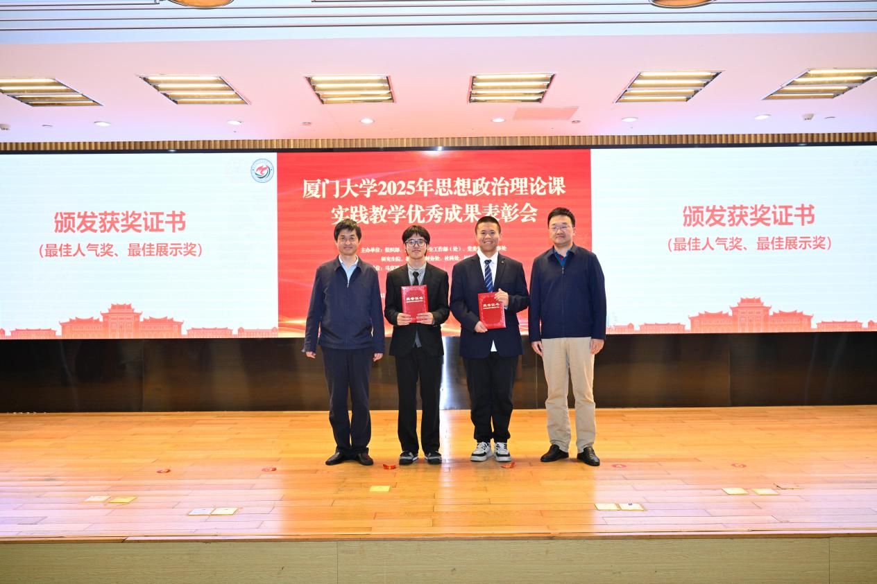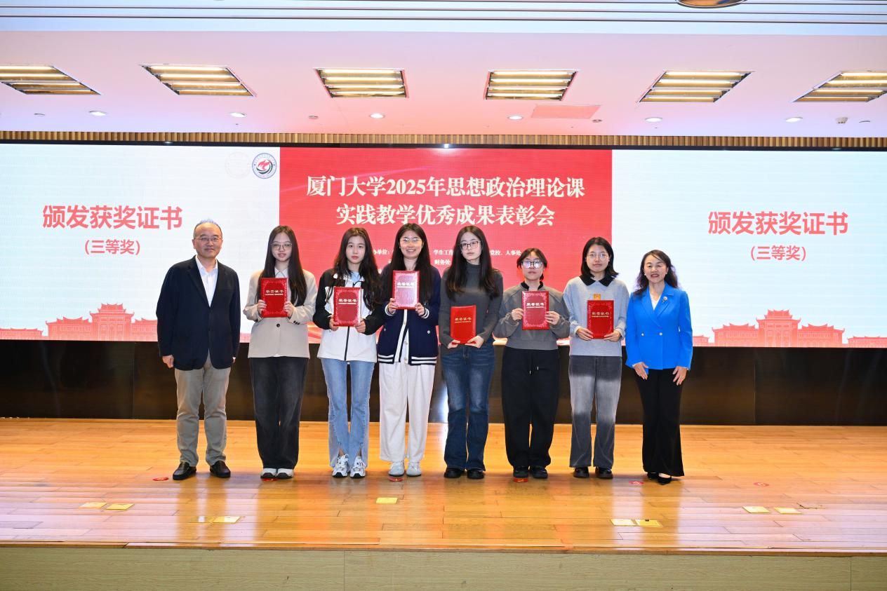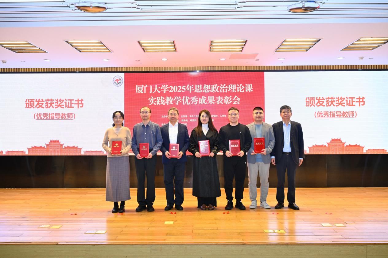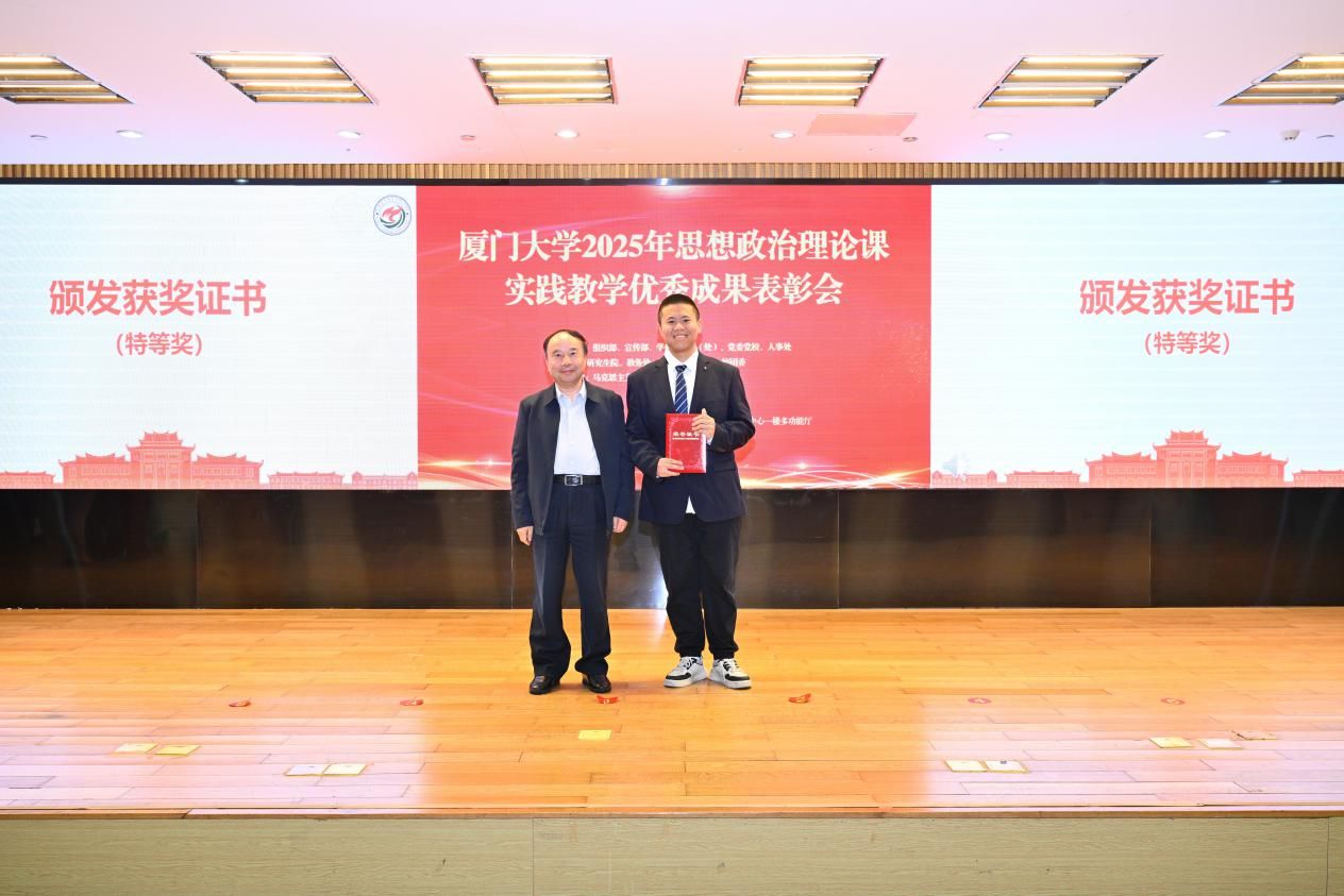 现场评选结束后,教务处黄艳萍副处长宣读了《关于表彰2025年厦门大学思想政治理论课实践教学优秀成果、优秀指导教师的决定》。本次评 选共有170支队伍获奖,其中特等奖1个,一等奖19个,二等奖36个,三等奖54个,优秀奖60个;同时,杨青梅等24位老 师获“优秀指导教师”。徐进功、高和荣及其他参会领导老师为获奖师生颁发证书。