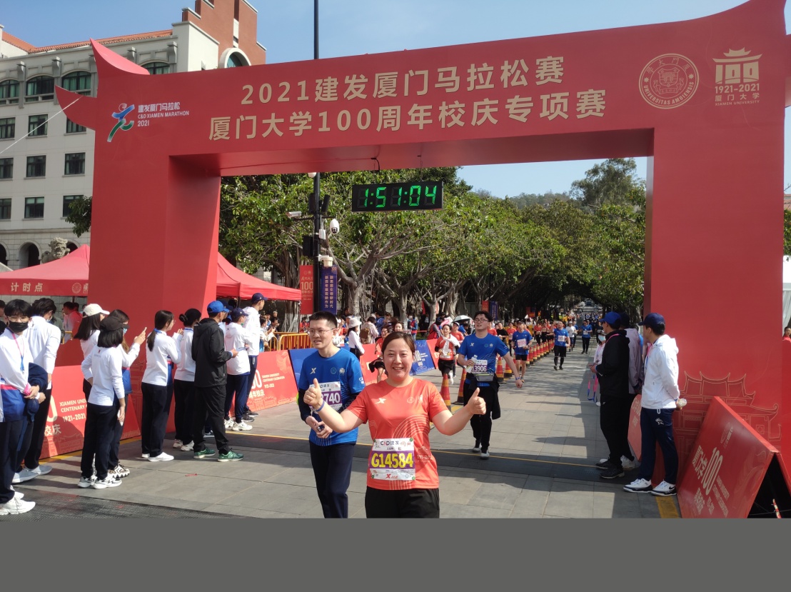 4月10日,2021建发厦门马拉松赛厦门大学百年校庆专项赛火热开赛,此次专项赛从厦门国际会展中心出发,途径大学路,最终抵达厦门大学思明校区嘉庚广场。我院王亚群、蒋昭阳、郑雁、朱东波4位老师,以及唐帅、林超群、黄昊峰等14位学生踊跃参加此次比赛,纷纷奔向最美赛道,并成功抵达终点。