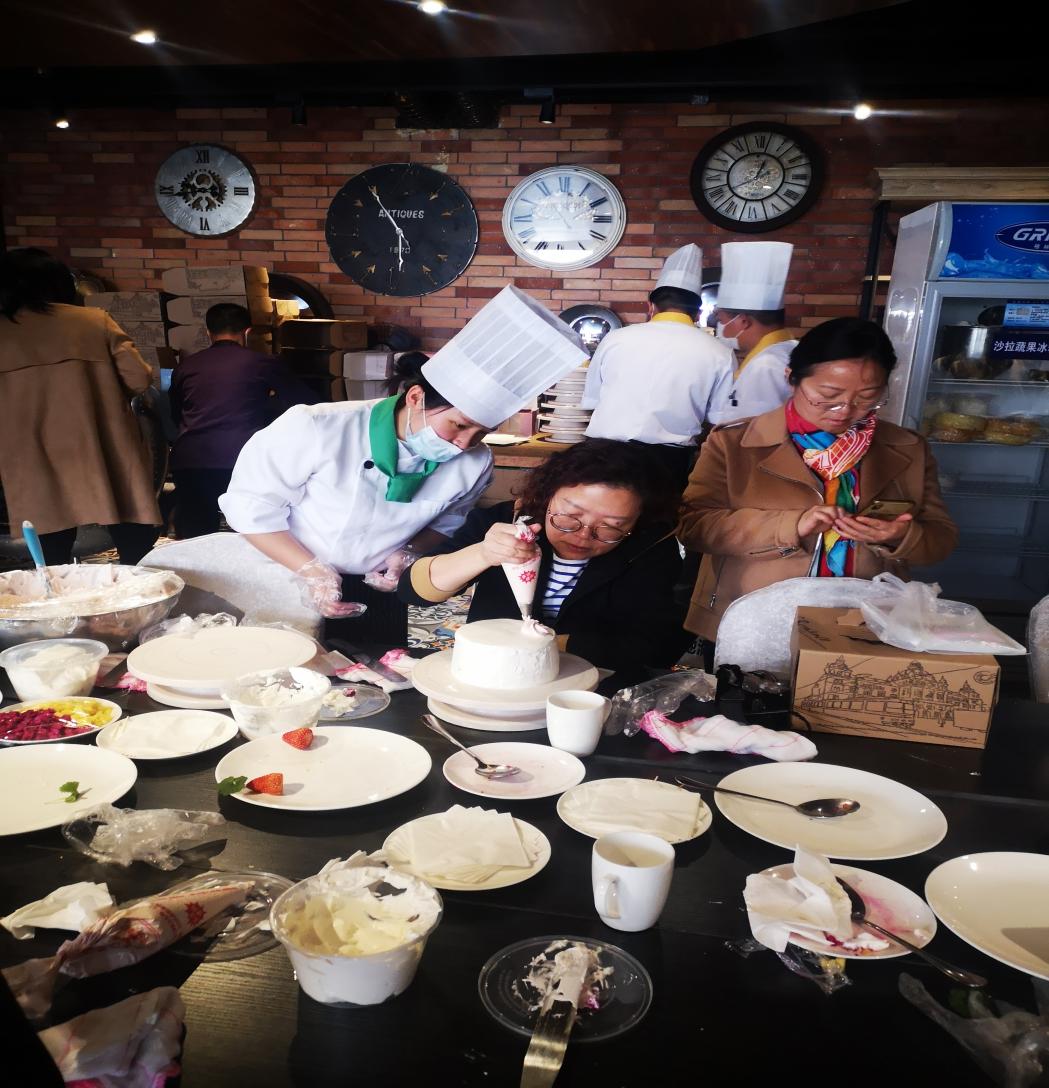 此次活动邀请了林梧桐楼的蛋糕烹饪老师,烹饪老师首先讲解了奶油制作的配比和操作方法,接着讲述了蛋糕胚制作的流程与注意事项,并通过视频直播和手把手教学的方式指导老师们进行蛋糕DIY设计。随后,女教工们用灵巧和充满创意的双手开始设计蛋糕,创造出了一份份别出心裁、赏心悦目的艺术品。大家在DIY过程中互相帮助,分享生活趣事,交流工作心得,享受曼妙轻松的节日时光,悠闲惬意。会后,大家互相拍照留念,记录这一下午的美好时光,在欢声笑语中结束了今天下午的DIY活动。