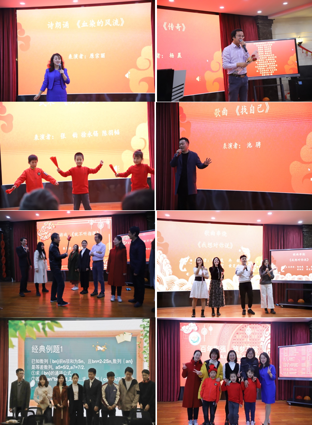 细数峥嵘岁月,我们感慨着前辈的不屈;回忆那血染的风流,我们称颂着英雄的气概。原宗丽老师深情朗诵诗歌《血染的风流》,铿锵有力的表演坚定了我们深厚的家国情怀,厚植了我们青年人的责任与担当。杨晨老师用一首《传奇》告诉我们,每一个人都在不停地抒写着自己的人生传奇。池聘老师演唱的《找自己》,曲风轻快,意味深长,鼓励大家要勇于回归自我。老师家属张韵、徐永锡、陈羽韬三位小朋友带来武术表演《功夫少年》,展现了“少年强则国强”的精神风貌。