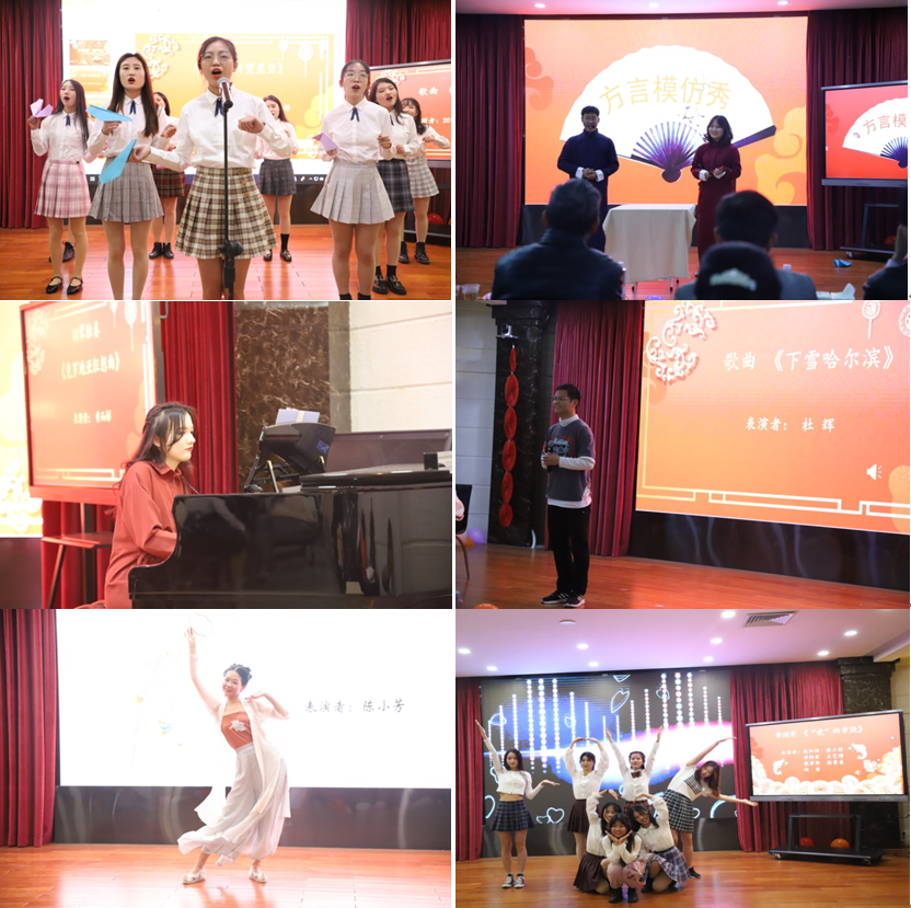 眼有星辰大海,心有繁花似锦,愿流年不负,愿岁月可期。2019级硕士班团支部为我们带来了开场歌曲《仰望星空》、2020级硕士生唐帅和闫舒闲表演《方言模仿秀》,嘹亮的歌声、幽默的方言秀瞬间点燃师生们的热情,营造出欢腾的新年气氛。2020级硕士生黄而彬弹奏《克罗地亚狂想曲》,在她的演绎下欢乐的现场又多了一分静穆和庄重。2020级博士研究生杜辉演唱的歌曲《下雪哈尔滨》,细腻温存的歌声呈现出大雪纷飞的浪漫东北,令人神往。由2020级硕士生廖小婷、高阳阳等六名同学带来的舞蹈《爱的串烧》,2020级硕士陈小芳带来的独舞《芒种》皆展示了她们对于爱的诠释和希望的播种。