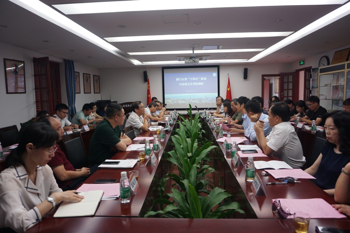 10月7日下午,校党委常务副书记李建发一行到我院调研“十四五”规划情况。社会科学学部、学校办公室、组织部/党的建设办公室、宣传部/教师工作部、学生工作部(处)、党委人才工作办公室/人事处、党委政策研究室/发展规划办公室、研究生院、教务处、社会科学研究处、国际合作与交流处、财务处、资产与后勤事务管理处、基建处负责人,马克思主义学院党政领导班子、学科带头人、教研部主任、国家及省部级平台基地负责人、部分青年教师代表等参加了本次调研座谈会。