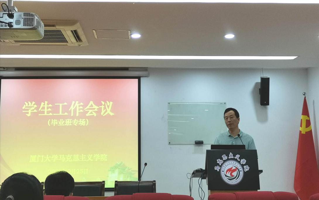 团委书记蔡虎堂主要从学生管理细节方面和同学们做了交流。他说毕业班同学即将毕业,并不意味着与学院关系的疏离,同学们还是要提高对学院的关心度与参与度,积极地投入到学院的建设事业中来,集体荣誉是靠大家一起努力维护的。同时告诫毕业班同学作为老生,更应该带头遵守学院的各项制度,要高效利用时间,提升自己、充实自我。同时他也要求同学尤其是同宿舍同学要互相关心,互相体谅,和睦相处,要积极培养与人交往的能力。明年,学院将迎来建院十周年,蔡老师希望全体同学能与学院一起进步,共同成长。