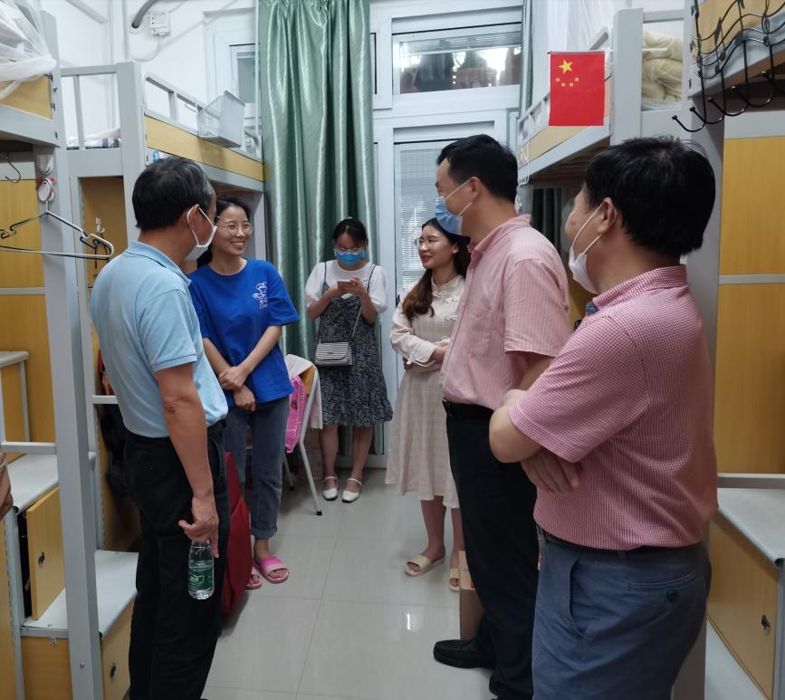 6月1日下午,马克思主义学院党委书记侯利标、党委副书记杨建中、团委书记蔡虎堂来到我院学生宿舍看望返校的非毕业班学生,了解他们返校后的学习和生活。