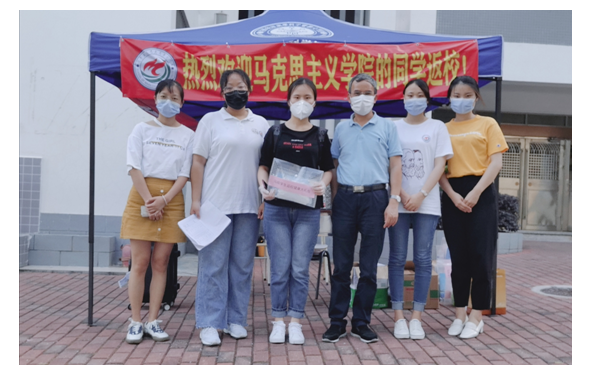为了安全、有序迎接学生返校,学院做了全面充分的准备工作。学院党政领导高度重视,多次召开专题会议部署学生返校工作,成立学生分批错峰返校工作领导小组,下设综合协调组、宣传保障组、教学保障组、境外师生保障组、技术保障组、物资保障组等六个小组。先后制定《马克思主义学院学生返校工作方案》等文件,建立起快速、联动的疫情防控工作体制,进一步提高对疫情的应变能力。同时为确保学生安全健康返校,学院辅导员指导学生事先在线上系统就居住地址、健康情况等信息进行返校申请,并对大家的健康情况给予每日监测。学院还针对学生返校中、返校后的注意事项及学习工作进行周密部署,加强宣传,构筑起一道坚固的安全防线。