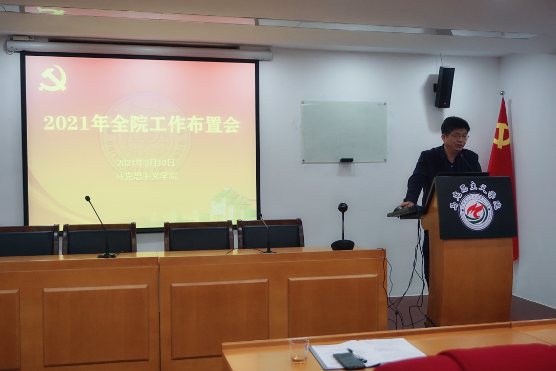 2021年3月10日上午,学院在囊萤楼313会议室召开2021年春季学期全院第一次教职工大会。会议就新学期各项工作进行布置。校党委副书记、马克思主义学院院长徐进功出席会议。会议由学院党委书记侯利标主持。