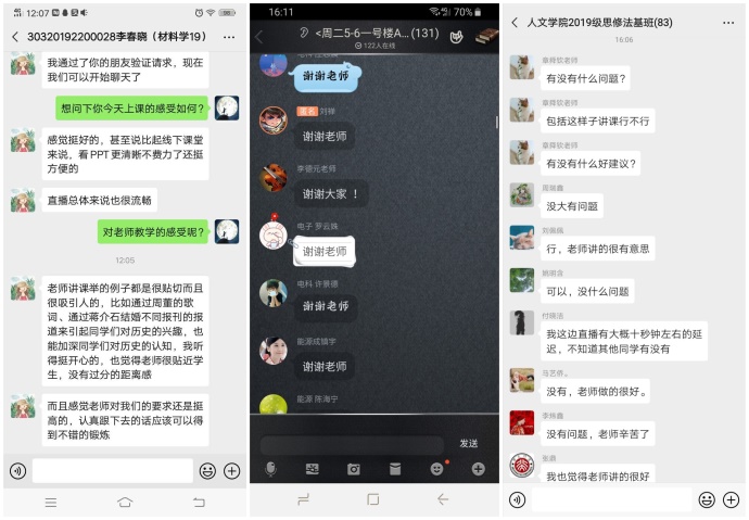 开学第一周,厦门大学网络思政课直播正式放送!为保证每堂课的课程效果,老师和同学们根据前期预演安排提前10-15分钟进入到网络课堂,相互配合调试。在授课过程中网络通畅、画面清晰、声音洪亮,各项课程顺利进行。网络课堂秩序井然有序,师生网络交流热烈活跃! 课程结束后,同学们好评如潮,对于非常时期在家也能高效上课纷纷点赞。