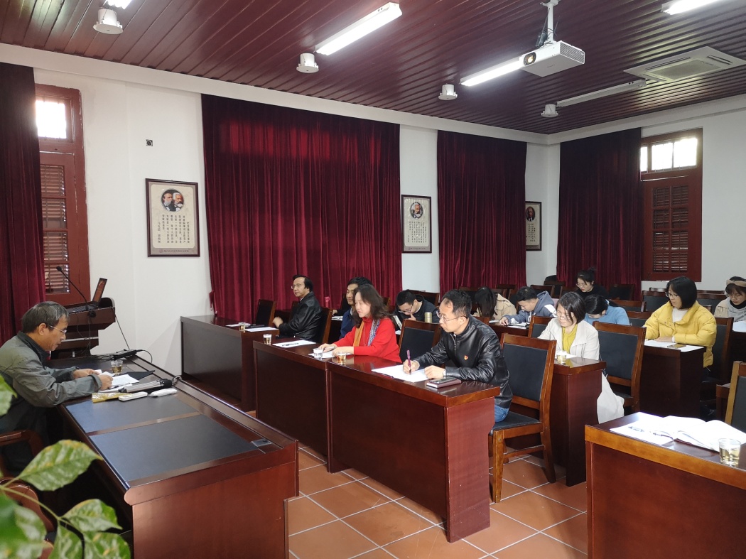 2020年1月9日上午,马克思主义学院在同安一号楼201会议室开展党委理论学习中心组学习,专题学习习近平总书记在“不忘初心、牢记使命”主题教育总结大会上的重要讲话精神。院党委书记侯利标作会议精神传达,学院党委委员、党支部书记和党务秘书参加了此次学习。