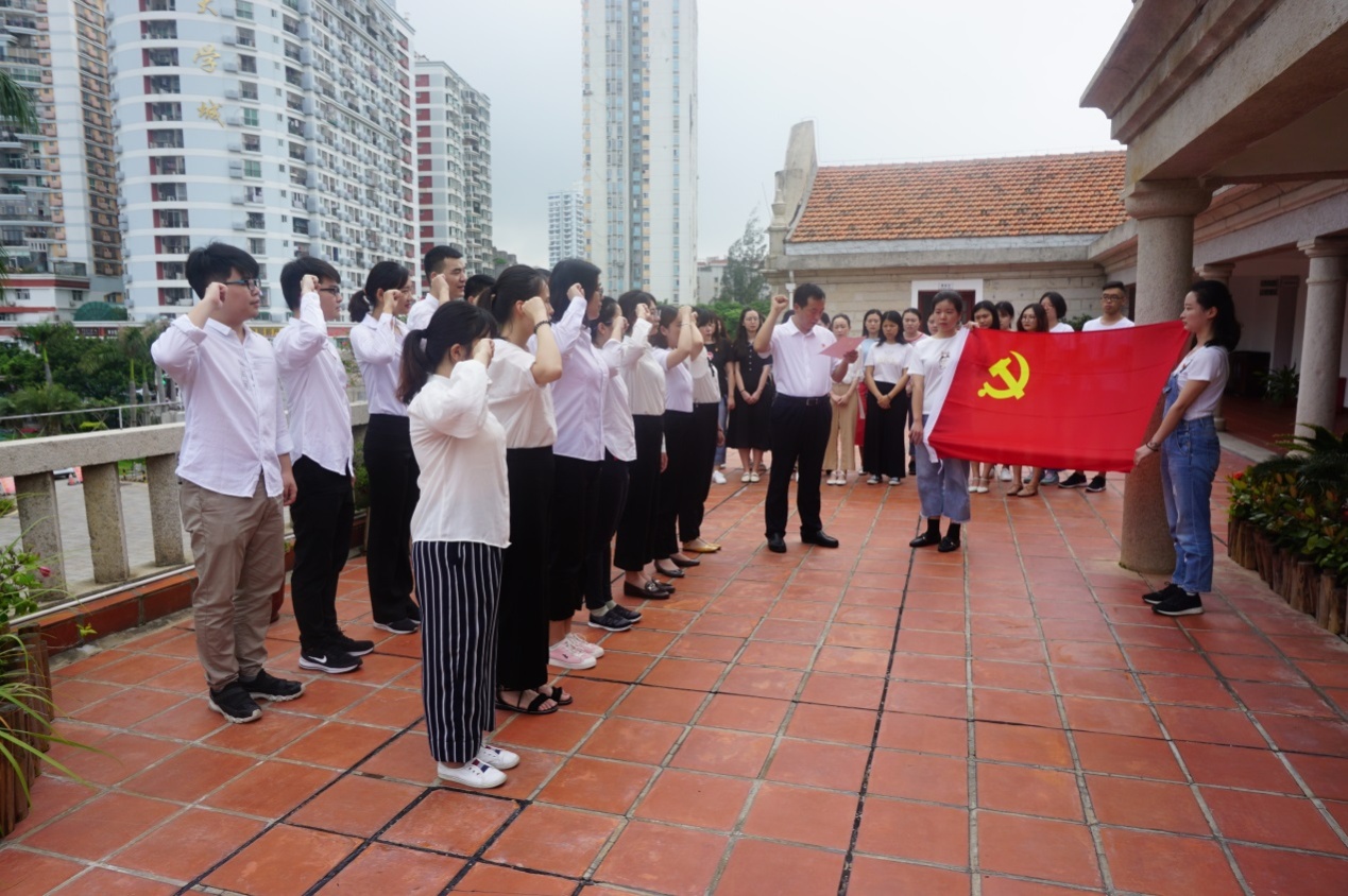 首先,会议举行了15位新入党员入党宣誓和佩戴党员徽章仪式。新党员在马克思像前,面对党旗,在蔡老师带领下庄严宣誓,表达了对党的忠诚和为共产主义事业奋斗终身的决心。蔡虎堂老师表示,希望新入党的十五位同学不要辜负党组织的期望,要发扬党的优良传统,积极在各方面发挥党员的先锋模范作用。