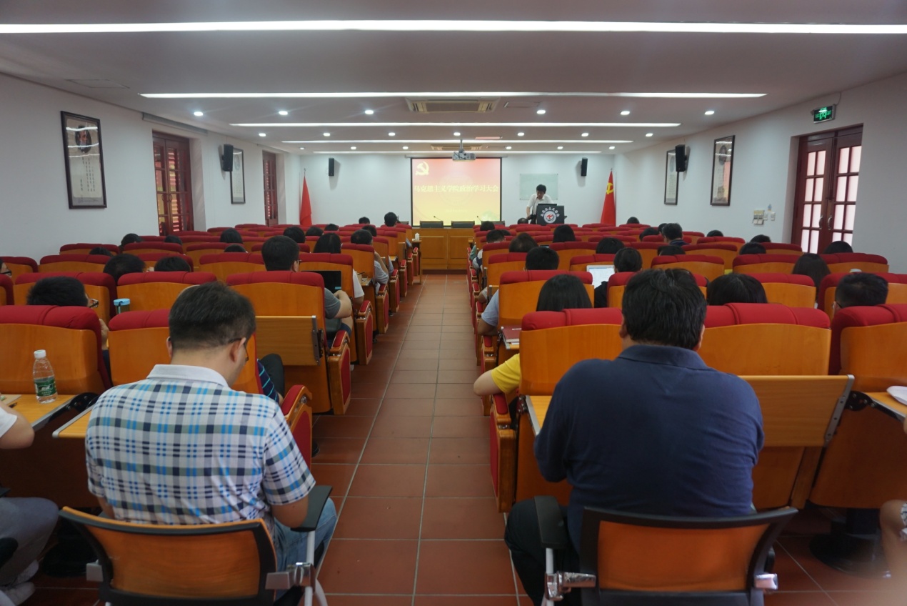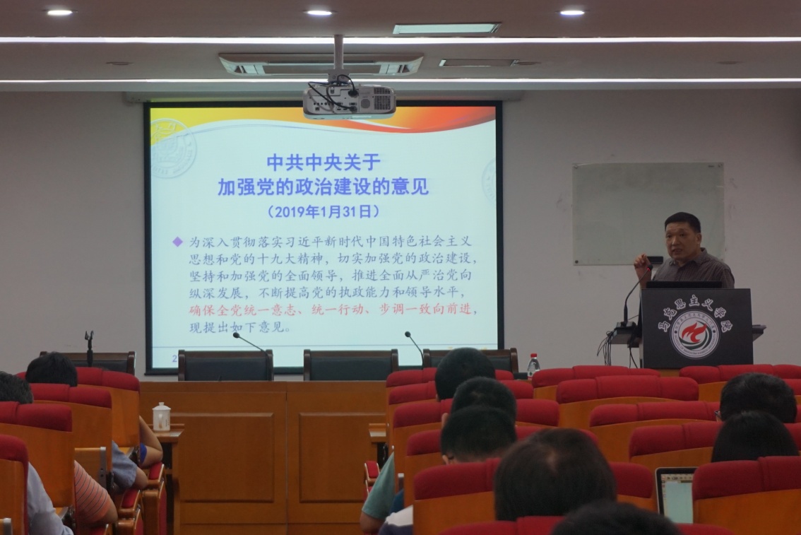 在政治学习部分,学院邀请党委党校原副校长苏劲教授为师生带来一场题为“加强党的政治建设,坚守思政课鲜明政治导向”的报告。全院教职工、学生支部委员参加此次政治学习。