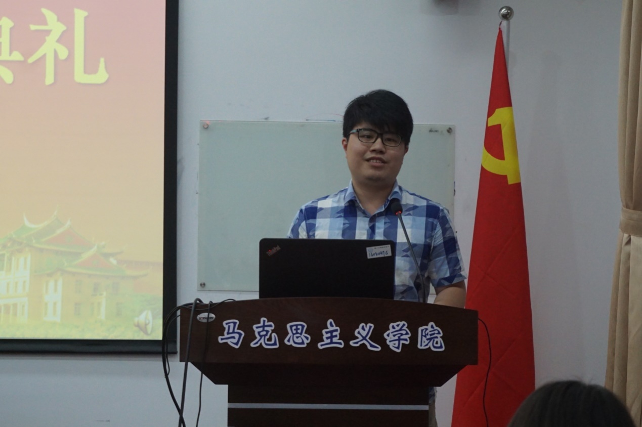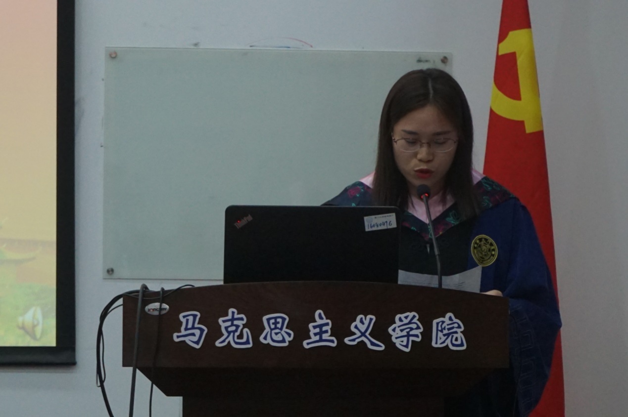 2017级硕士生陈仁峰同学代表马克思主义学院全体在校学生向毕业生们送上美好的毕业祝福。他衷心祝愿各位学长学姐们,勇往直前地去追求平凡中的卓越,矢志不渝地去践行青春无悔的诺言,踏上新的征程,开启人生新的华章。