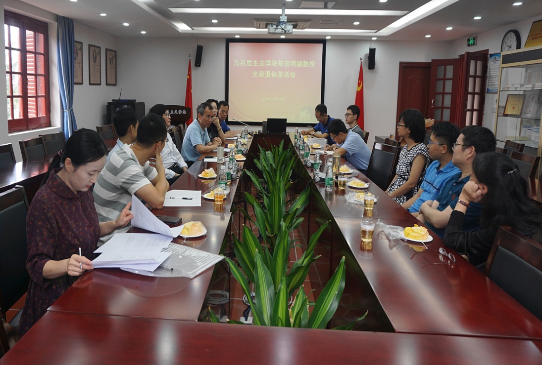 614日上午,陈宣明副教授光荣退休茶话会在囊萤楼302会议室举行,院工会及原理教研部教师参加了座谈。学院党委书记侯利标主持座谈会。