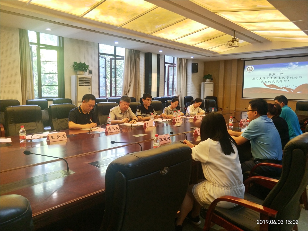3日上午,一行6人走访了重庆大学,与该校马克思主义学院副院长吕进、马克思主义基本原理教研室主任陈飞、思想道德修养与法律基础教研室主任杨泽文、团委书记杨华、马克思主义基本原理教研室党支部书记蒋楼等交流座谈。吕进副院长就重庆大学的历史沿革、办学理念以及马克思主义学院独立运行以来的课程设置、学科建设、发展规划等基本情况作了简要介绍。随后,陈飞主任、杨泽文主任分别就重庆大学马克思主义基本原理和思想道德修养与法律基础两门课程的课程设置、教学安排、社会实践等方面作了详细介绍。团委书记杨华重点介绍了学院研究生学生工作的开展情况,党支部书记蒋楼主要就教学工作、学生工作、教研室发展、社团活动“四位一体”的支部建设作了介绍。双方表示要继续深化双方在教学和科研之间的交流,相互借鉴、共同促进课程和学科建设。