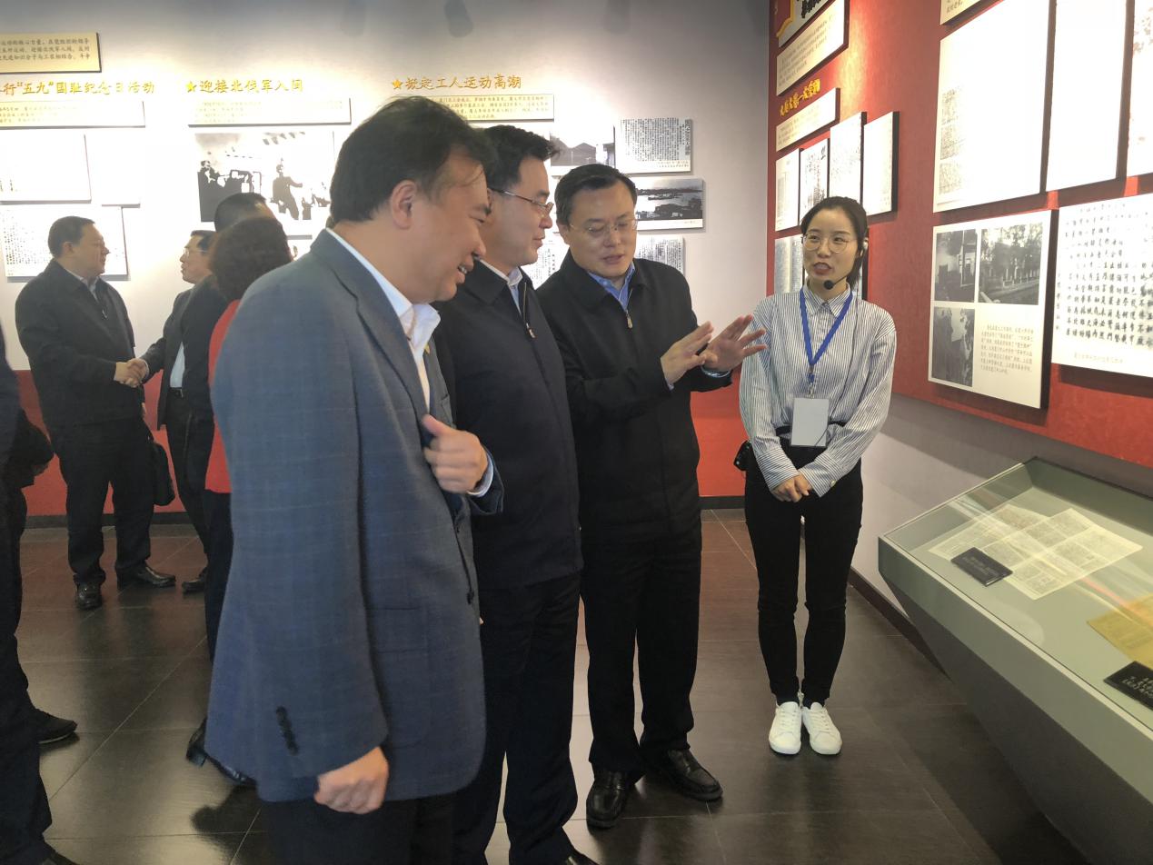 在参观的过程中,恰遇我院蔡虎堂老师带领学院入党积极分子进行党性教育学习。蔡老师向胡书记汇报了本次党性教育的情况,胡书记现场向同学们了解学习的感受。我院2017级覃晓洁以杨世宁烈士为例,抒发了对革命时代的英雄舍小家成大家胸怀的敬佩,胡书记对此给予充分肯定。