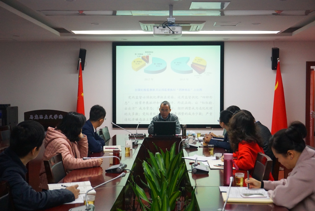 2019年2月27日上午,学院在囊萤楼302会议室开展了以“学习贯彻十九届中央纪委三次全会精神”为主题的中心组理论学习。此次学习由党委书记侯利标主讲,学院全体理论学习中心组成员参加。