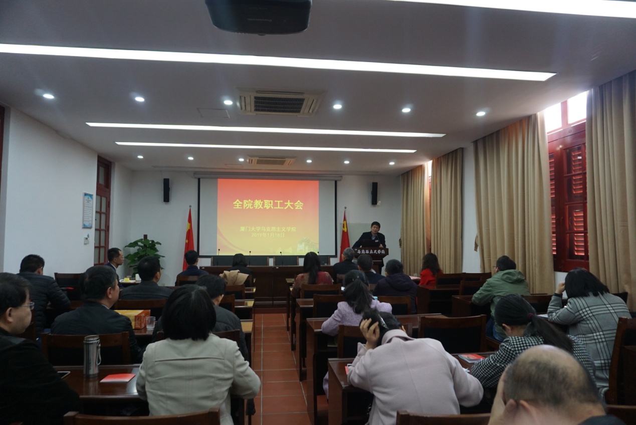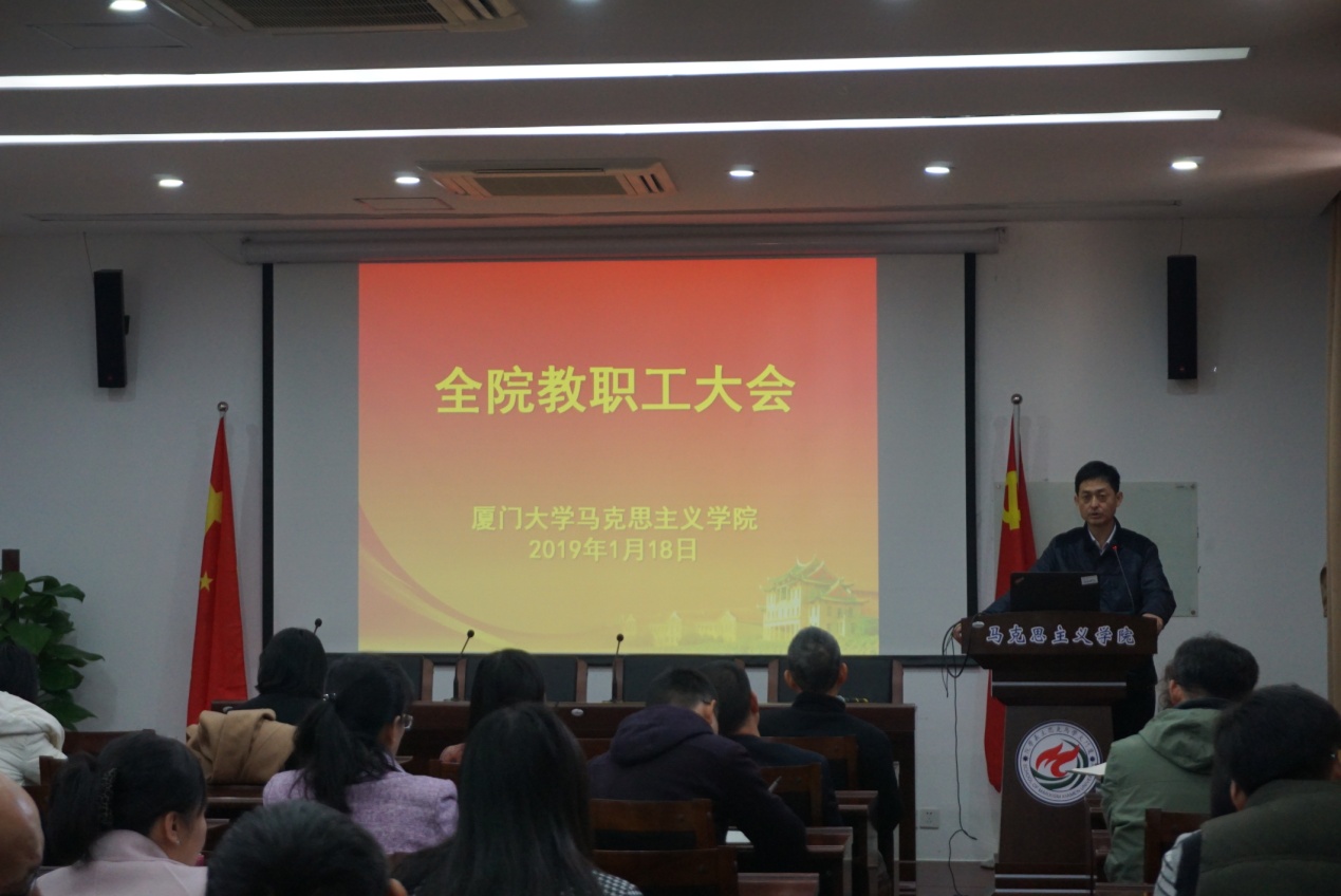 1月18日上午,全院教职工大会在囊萤楼216会议室召开。校党委常委、学院院长徐进功,学院党委书记侯利标,张有奎常务副院长以及学院全体教职工参加了会议。会议由党委书记侯利标主持。