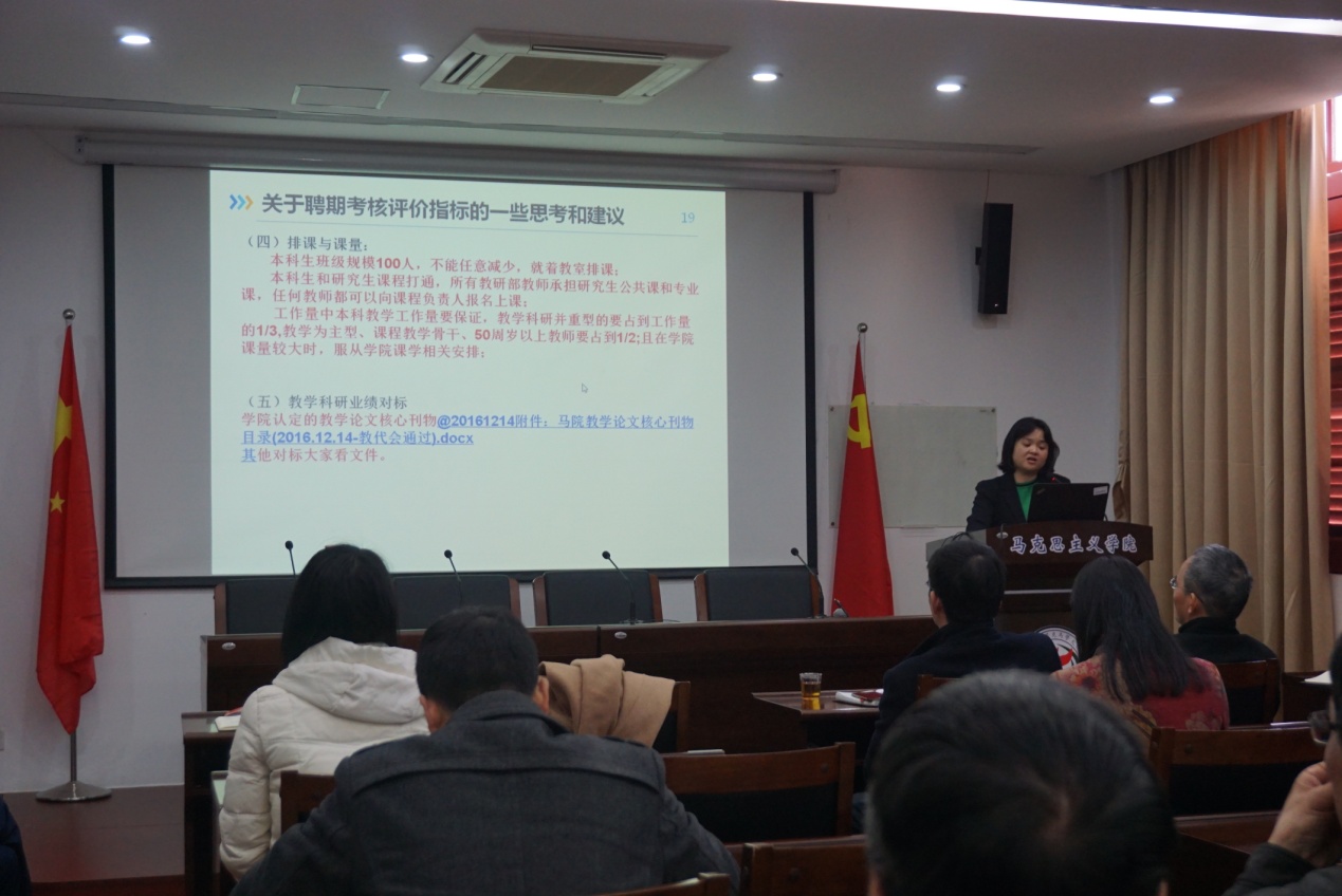 随后,学院各分管领导对2018年各自分管工作进行了总结。张有奎常务副院长就学科建设、师资队伍、社会服务工作进行总结;原宗丽副书记对党建和学生工作做相关总结;石红梅副院长总结和部署了本科教学工作;张艳涛副院长对科研、研究生人才培养、对外交流这三项工作进行了总结。
