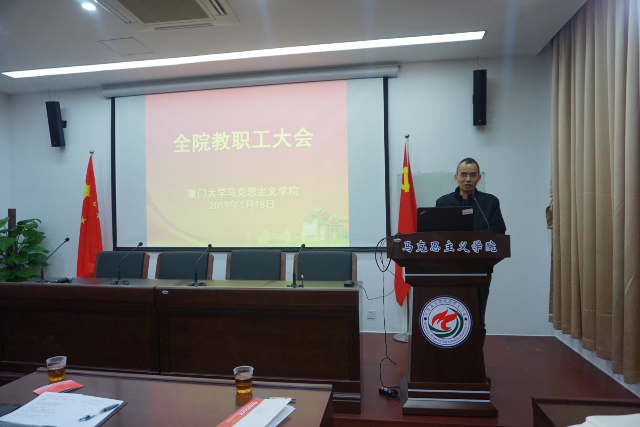 徐进功院长对新一年我院的发展提出了展望,强调全院教职员工要增强全局意识;党政领导班子要把握公平公正,致力于“把方向”“聚人心”“抓学科”“建一流”。