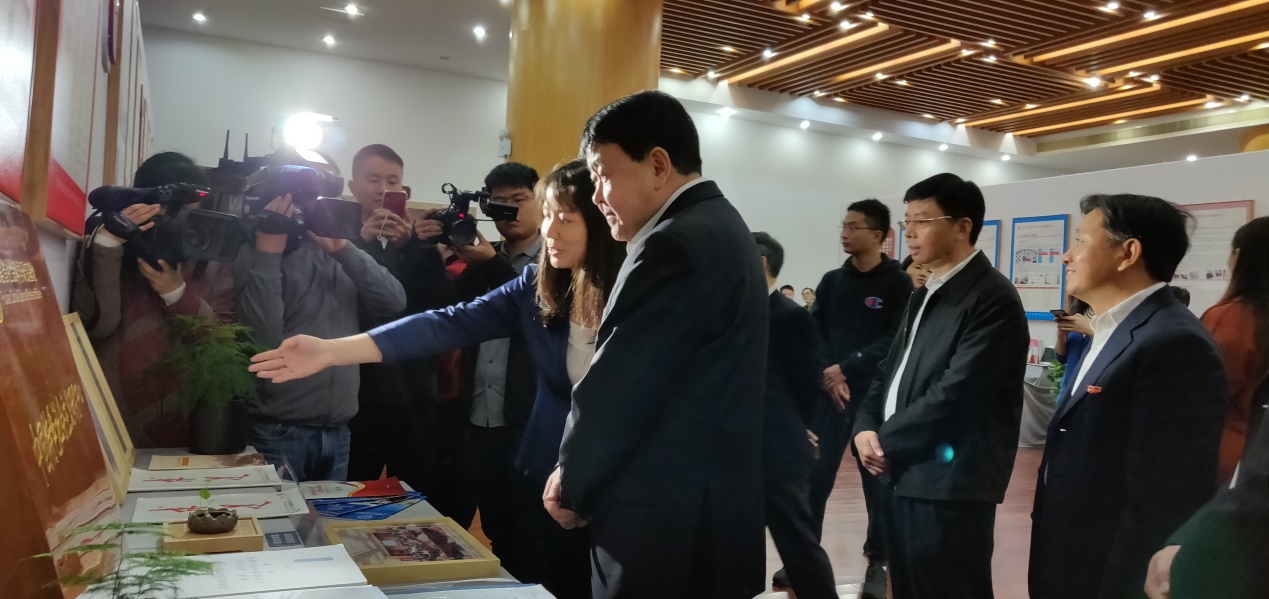 展会上,梁建勇部长等首先参观了基地展并观看了巡礼片,我基地代表首席专家冯霞教授详细地讲解了基地自2014年成立以来取得的丰硕成果、特色和亮点,获得了梁部长的高度肯定。