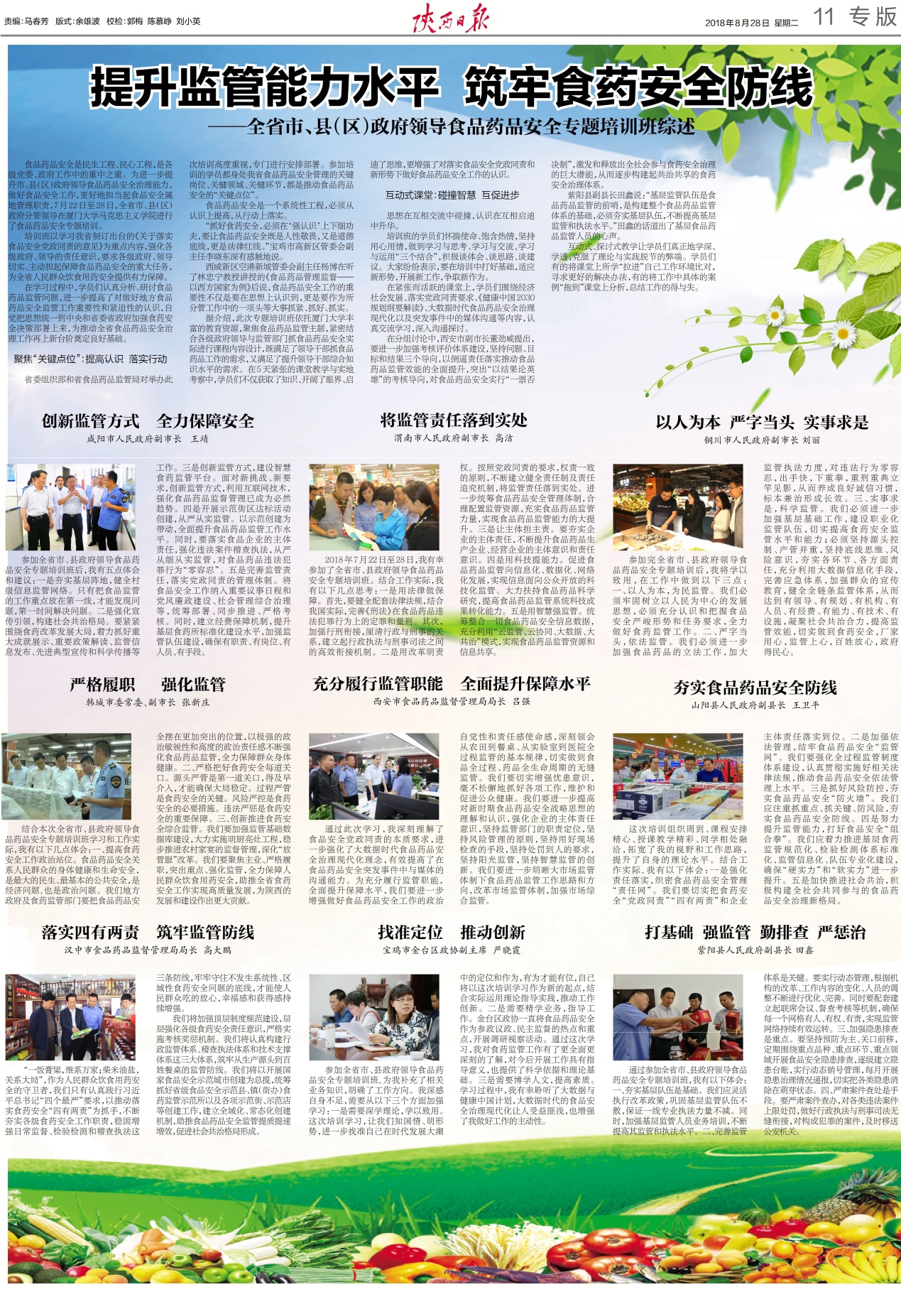 近日,《陕西日报》以《提升监管能力水平 筑牢食药安全防线 ——全省市、县(区)政府领导食品药品安全专题培训班综述》专版报道今年7月在我院举办的陕西省食品药品监管干部培训班。报道指出:“为进一步提升市、县(区)政府领导食品药品安全治理能力,做好食品安全工作,更好地担当起食品安全属地管理职责,7月22日至28日,全省市、县(区)政府分管领导在厦门大学马克思主义学院进行了食品药品安全专题培训。在学习过程中,学员们认真分析、研讨食品药品监管问题,进一步提高了对做好地方食品药品安全监管工作重要性和紧迫性的认识,自觉把思想统一到中央和省委、省政府加强食药安全决策部署上来,为推动全省食品药品安全治理工作再上新台阶奠定良好基础”。