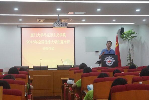 7月16日上午,厦门大学马克思主义学院2018年全国优秀大学生夏令营闭营仪式在囊萤楼216报告厅举行。出席仪式的有马克思主义学院副院长张艳涛教授、党委副书记原宗丽老师、研究生教学秘书熊欢老师出席会议,会议由蔡虎堂老师主持。