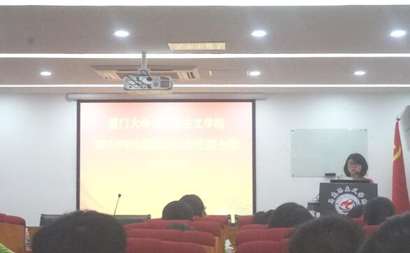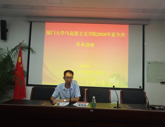 7月13日下午,厦门大学马克思主义学院2018年全国优秀大学生夏令营学术讲座活动在囊萤楼216报告厅举行。主讲人为张艳涛教授,他以马克思主义理论前沿问题为起点,介绍了马克思主义理论的各个研究方向,最后用马克思主义基本原理分析问题,不仅让夏令营营员们了解到马克思主义理论的重要性,而且让营员们认识到学术研究的价值。