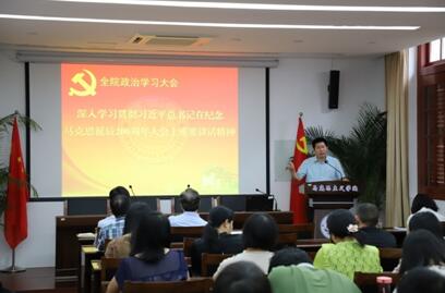 2018年6月6日下午,全院政治学习大会在囊萤楼216报告厅举行。大会以“深入学习贯彻习近平总书记在纪念马克思诞辰200周年大会上重要讲话精神”为学习主题。会议由党委书记许和山主持,全院教职工以及学生支部委员参加了本次大会。