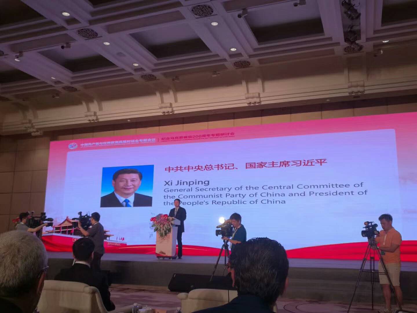 5月28日,由中共中央对外联络部主办的纪念马克思诞辰200周年专题研讨会在深圳隆重开幕。中共中央总书记、国家主席习近平向研讨会致贺信。中共中央对外联络部部长宋涛在开幕式上宣读贺信。中联部副部长郭业洲主持开幕式。