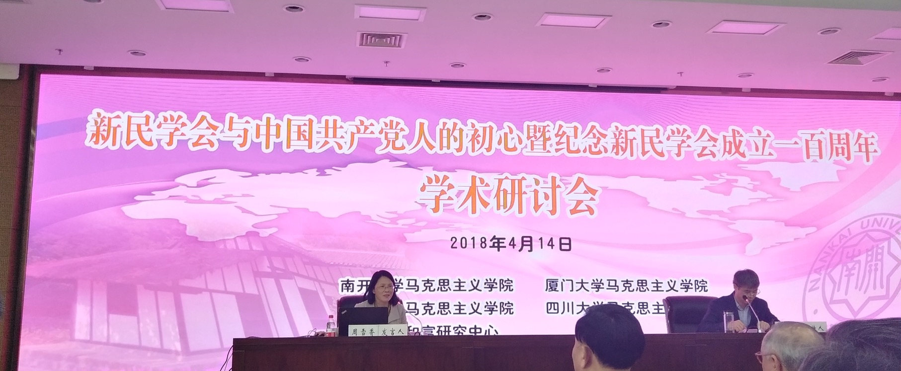 2018年4月14日,由南开大学、厦门大学、兰州大学、四川大学四所高校马克思主义学院共同主办的“新民学会与中国共产党人的初心暨纪念新民学会成立一百周年学术研讨会”在天津南开大学召开。我院许和山书记、佳宏伟副教授、周雪香副教授、贾凯助理教授参加了此次研讨会,并分别作大会发言。